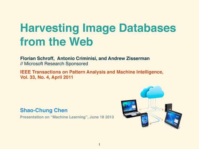 and Andrew Zisserman // Microsoft Research Sponsored 1 IEEE Transactions on Pattern Analysis and Machine Intelligence, Vol. 33, No. 4, April 2011 Shao-Chung Chen Presentation on “Machine Learning”, June 18 2013