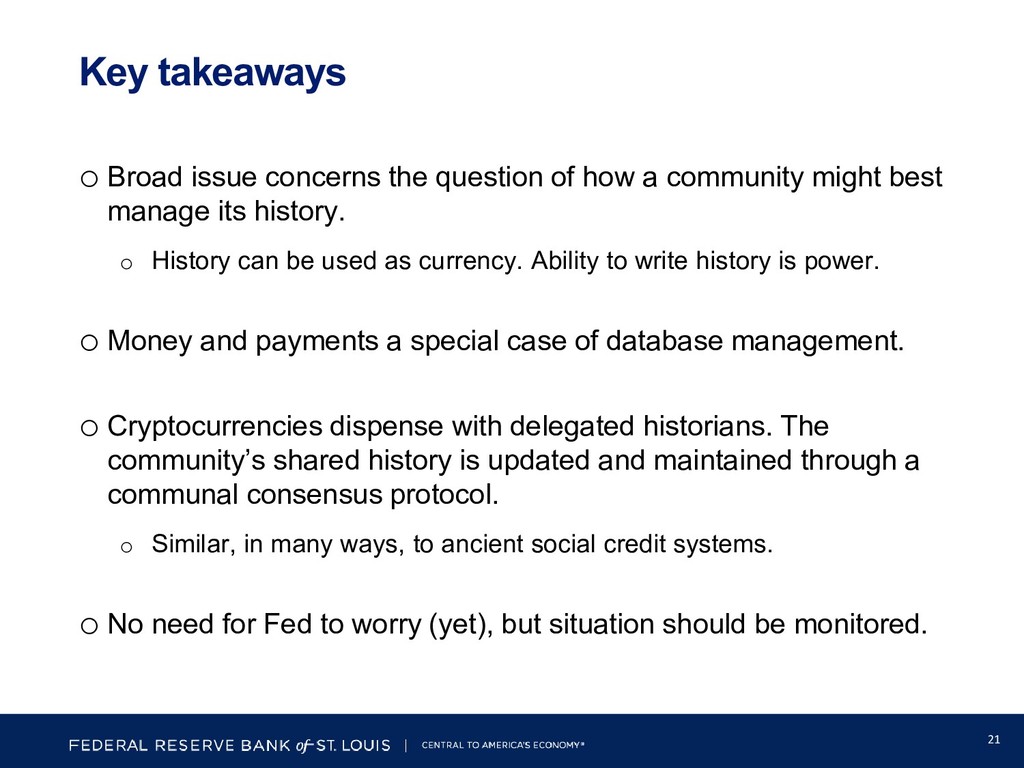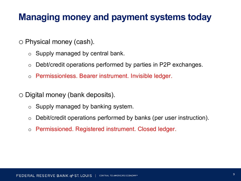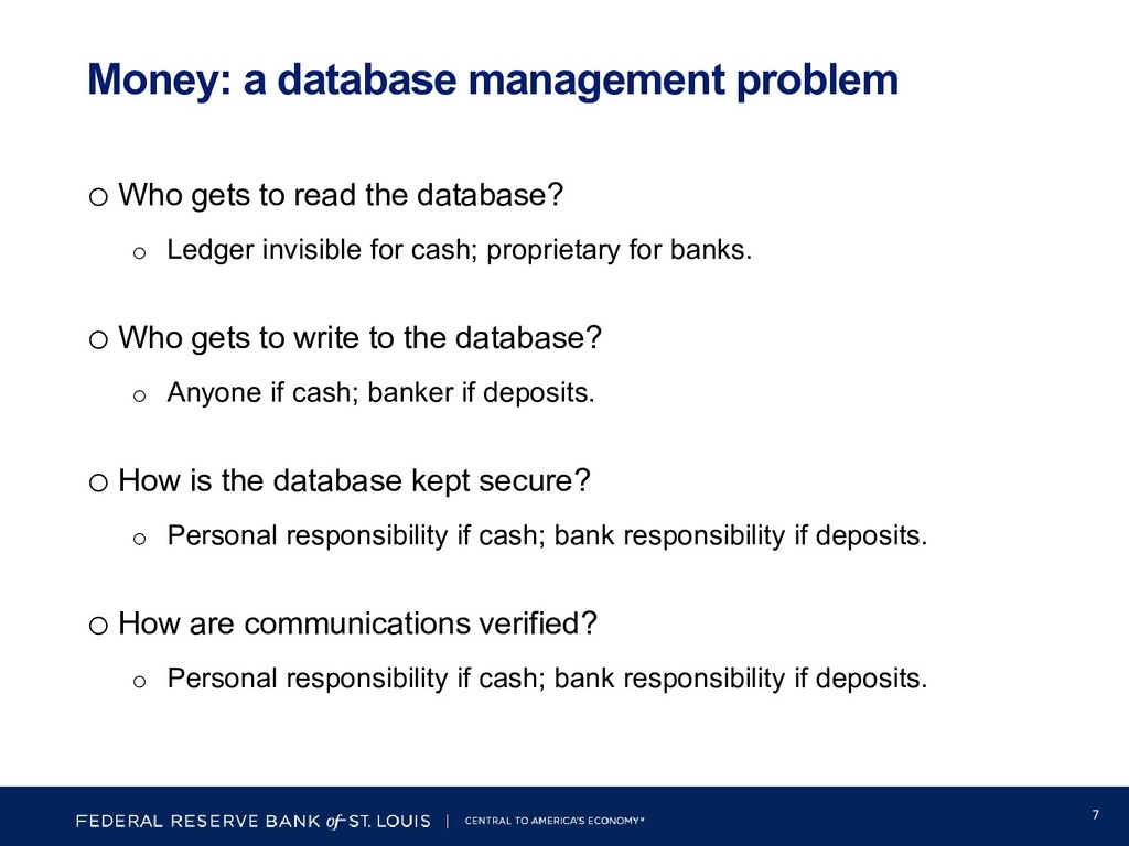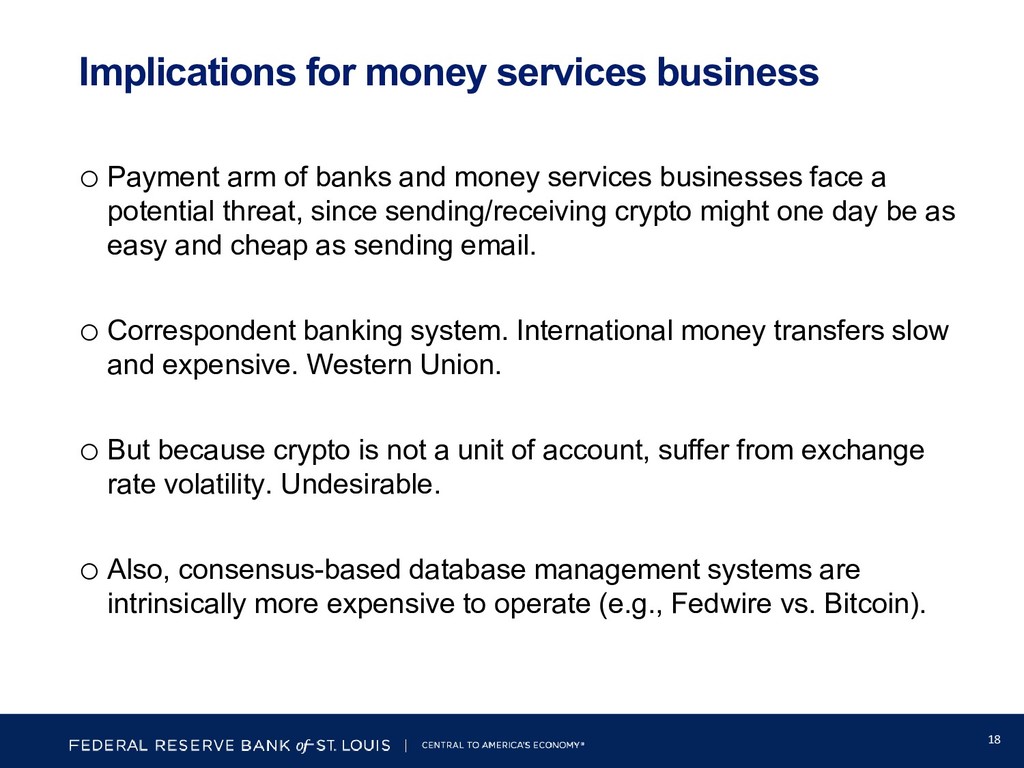 A short talk about the nature of money and payment systems, what they're fundamentally designed to do, how existing systems work, how cryptocurrencies solve a database management problem with different protocols, and what this innovation implies for money services businesses and central banks.
