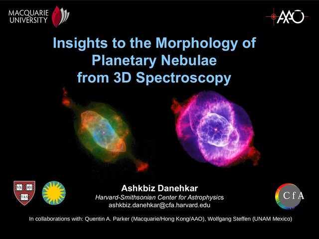 (UNAM Mexico) Insights to the Morphology of Planetary Nebulae from 3D Spectroscopy Ashkbiz Danehkar Harvard-Smithsonian Center for Astrophysics [email protected]