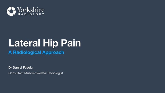 An exploration of the aetiology of common causes of lateral hip pain and some alternative swerve ball diagnoses. The radiological anatomy and approach to investigation as well as the common appearances seen on multimodality imaging (x-ray, MR, CT, ultrasound) are discussed.