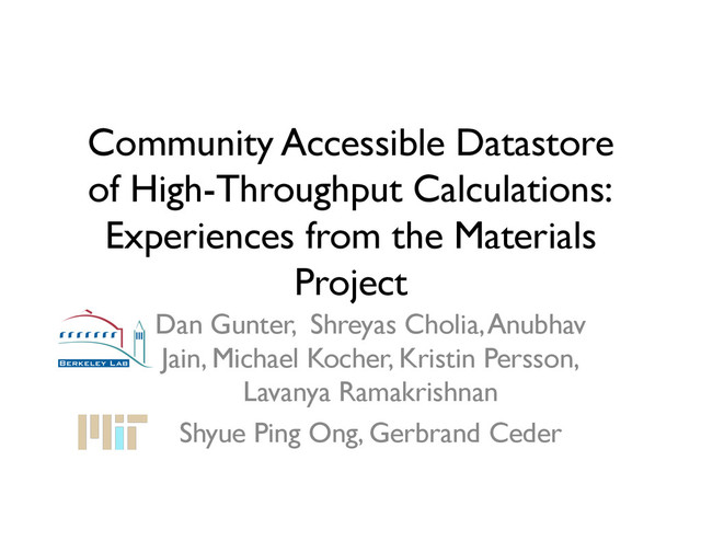 2011: Materials Genome Ini/a/ve which aims to “fund computa(onal tools, so-ware, new methods for material characteriza2on, and the development of open standards and databases that will make the process of discovery and development of advanced materials faster, less expensive, and more predictable” Source: "Materials Genome IniBaBve for Global CompeBBveness" hFp://www.whitehouse.gov/sites/default/files/microsites/ostp/materials_genome_iniBaBve-‐final.pdf