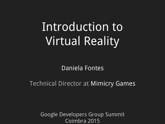 Literally and figuratively, Daniela Fontes shares some key factors on making the most of introductory VR experiences, and how to get started developing for this new medium.