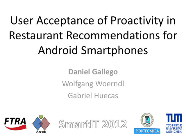 Important research questions include whether users would accept proactive recommendations, how to present recommended items and possibly notify users.