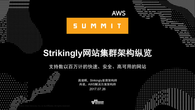 rights reserved. 龚凌晖,Strikingly首席架构师 肖凌,AWS解决方案架构师 2017.07.26 Strikingly网站集群架构纵览 支持数以百万计的快速、安全、高可用的网站