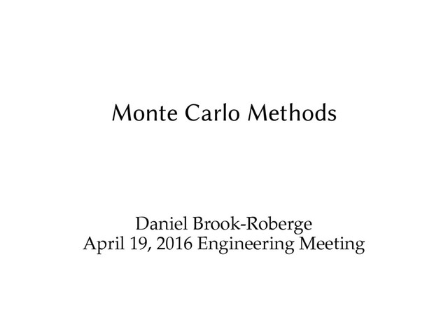 random number generator for MC methods are different than in other cases, such as cryptography. • It is generally unimportant for subsequent numbers in the sequence to be unguessable from a sample of previous numbers. • It is recommended to seed the RNG with a constant value during debugging to make results reproducible.