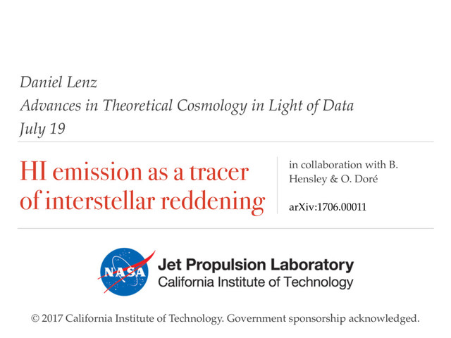 the game is component separation, not noise reduction" H.K. Eriksen ❖ Dust and synchrotron foregrounds in CMB data ❖ De-lensing of CMB data for primordial gravitational waves ❖ CIB measurements ❖ Extinction for cosmological galaxy surveys Daniel Lenz, Caltech/JPL An improved, unbiased E(B-V) map 2