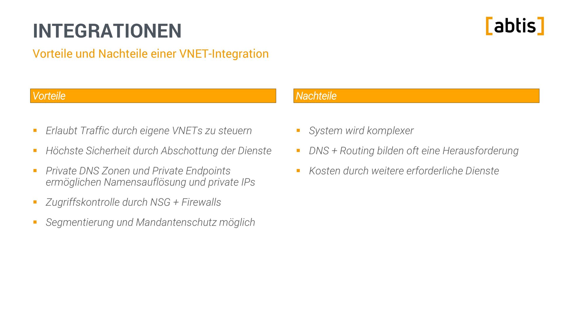 Ein weiterer wichtiger Aspekt ist die Integration der Container-Anwendungen mit anderen Azure-Diensten wie Virtual Networks (VNETs) und Sicherheitslösungen wie Azure Defender for Containers. Diese Integrationsmöglichkeiten ermöglichen eine erweiterte Skalierbarkeit, Sicherheit und Verwaltung von Container-Umgebungen.
