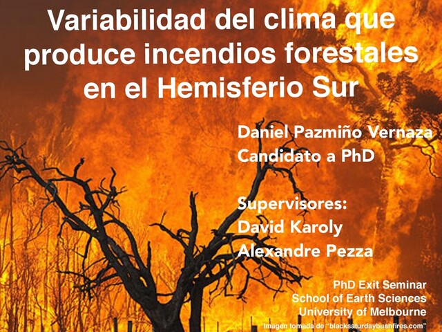 J. (2012). Flammable Australia. Compo GP, Whitaker JS, Sardeshmukh PD, Matsui N, Allan RJ, Yin X, Gleason BE, Vose RS, Rutledge G, Bessemoulin P, Brönnimann S, Brunet M, Crouthamel RI, Grant a. N, Groisman PY, Jones PD, Kruk MC, Kruger a. C, Marshall GJ, Maugeri M, Mok HY, Nordli Ø, Ross TF, Trigo RM, Wang XL, Woodruff SD, Worley SJ (2011) The Twentieth Century Reanalysis Project. Quarterly Journal of the Royal Meteorological Society 137, 1–28. doi: 10.1002/qj.776. McArthur, A. G. (1966). Weather and grassland fire behaviour. Forestry and Timber Bureau, Department of national Development, Commonwealth of Australia. Nairn J, Fawcett R, Ray D (2009) ‘CAWCR Technical Report No. 071: Modelling and understanding high impact weather: extended abstracts of the third CAWCR Modelling Workshop, 30 november - 2 December 2009, Melbourne, Australia.’ http://scholar.google.com/scholar? hl=en&btnG=Search&q=intitle:Defining+and+predicting+Excessive+Heat+events+,+a+National+system#0. Noble, I. R., Gill, A. M., & Bary, G. A. V. (1980). McArthur's fire‐danger meters expressed as equations. Australian Journal of Ecology, 5(2), 201-203. Pezza AB, Rensch P, Cai W (2012) Severe heat waves in Southern Australia: synoptic climatology and large scale connections. Climate Dynamics 38, 209– 224. doi:10.1007/s00382-011-1016-2. Rayner N, Parker D, Horton E, Folland C, Alexander L, Rowell D, Kent E, Kaplan A (2003) Global analyses of sea surface temperature, sea ice, and night marine air temperature since the late nineteenth century. Journal of Geophysical Research 108, 4407. doi:10.1029/2002JD002670. Victorian Bushfires Royal Commission, Teague, B., McLeod, R., & Pascoe, S. M. (2009). 2009 Victorian Bushfires Royal Commission: Interim Report 2: Priorities for Building in Bushfire Prone Areas. Government Printer, South Africa.