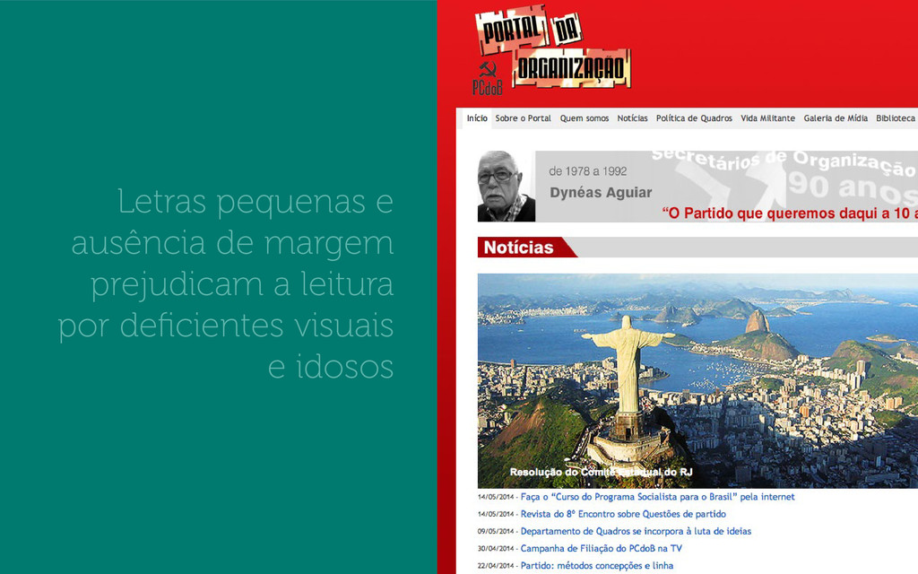 Letras pequenas e ausência de margem prejudicam a leitura por