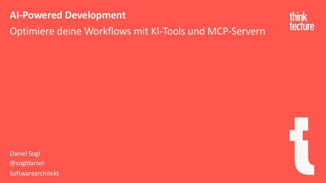 wird • Tool calls: Es werden aktiv Daten nachgeladen und Tools im Hintergrund aufgerufen • Self-reflection: Bewertet mehrere Lösungswege und wählt die beste Option aus • Optimal für: Debugging, komplexe Algorythmen, Architekturanalyse • Beispiele: GPT-5, Claude 4 Non-Reasoning • Direct token prediction: Output Tokens ohne interne Planung • Optimal für: Schnelle Generierung von Code, einfachen Aufgaben oder boilerplate Code • Beispiele: GPT-4.1, Gemini 2.5-Flash AI-Powered Development Optimiere deine Workflows mit KI-Tools und MCP-Servern Reasoning vs. Non-Reasoning LLMs