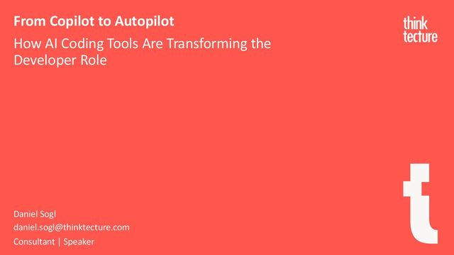 Developer & Web Technologies • Focus: Angular and Generative AI • Socials: https://linktr.ee/daniel_sogl How AI Coding Tools Are Transforming the Developer Role About me From Copilot to Autopilot