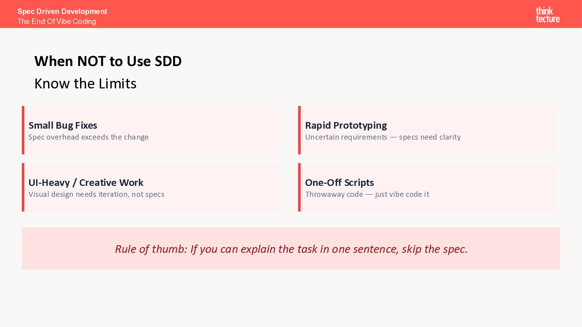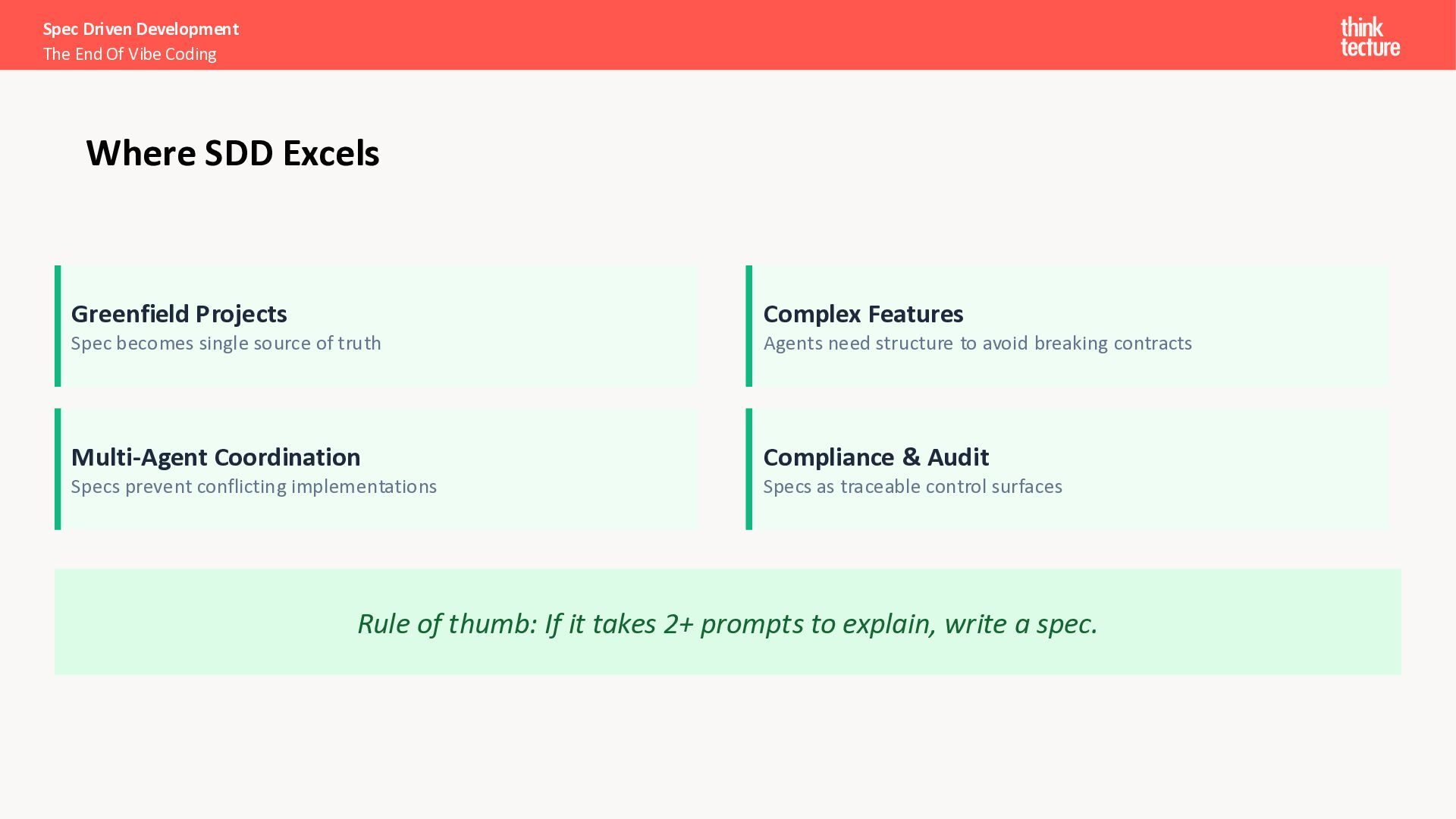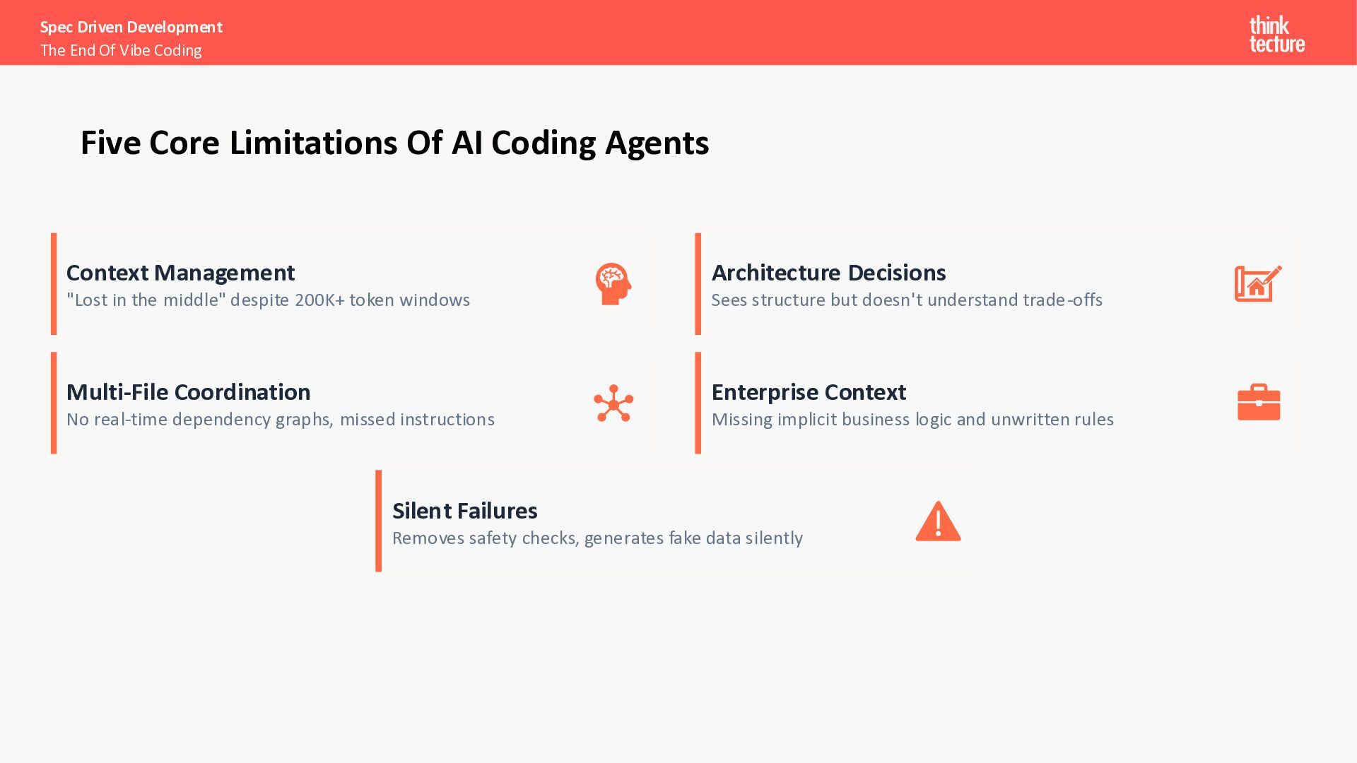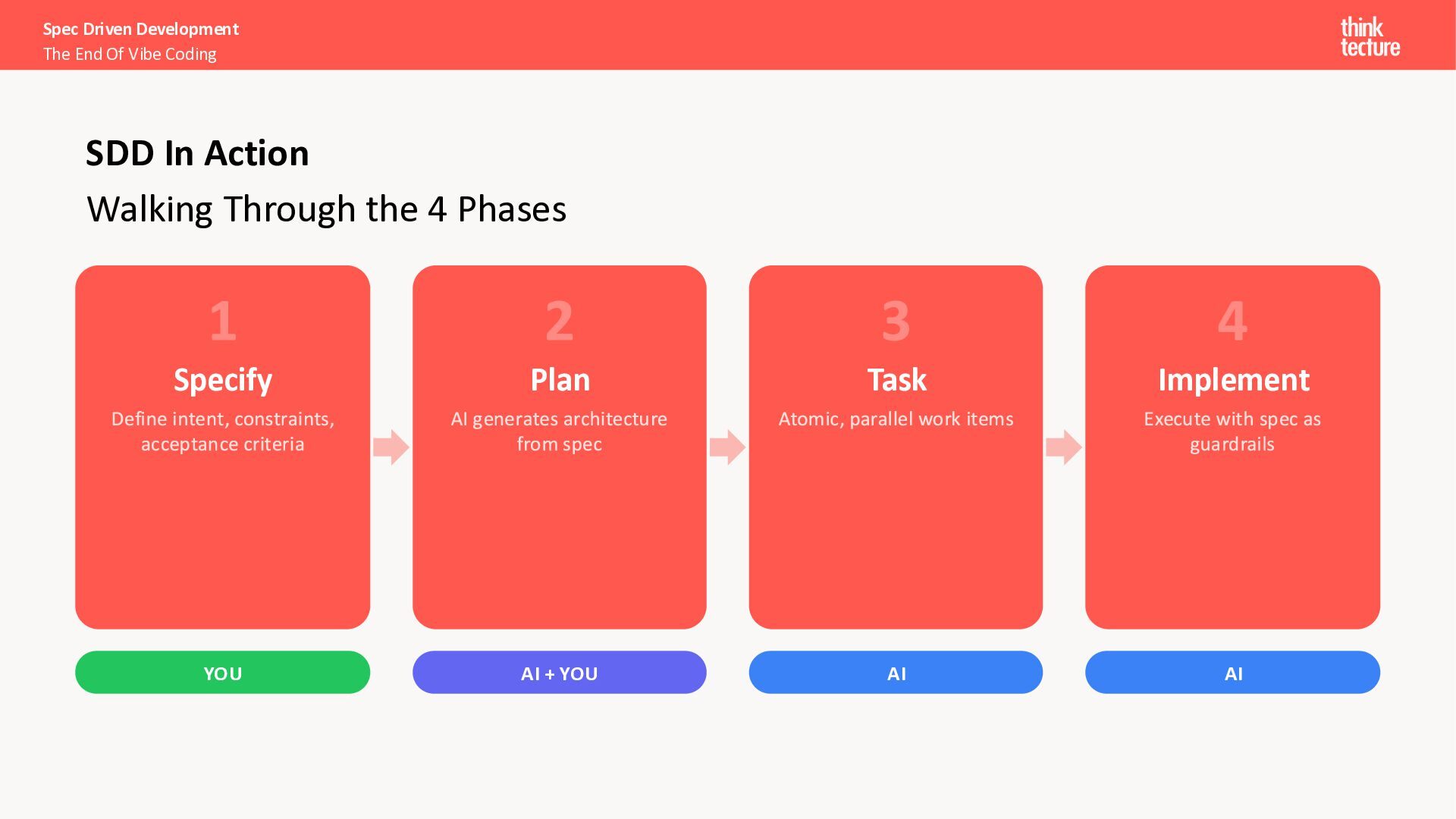 I want a SPA to search and explore Pokémon.” Search & Discovery • Debounced search bar, responsive grid (5/3/2 cols), infinite scroll Pokémon Cards • Image, name, base stats (HP, Attack, Defense, Sp. Atk, Sp. Def, Speed) Detail View • Full profile: types, abilities, height, weight, stats as bar chart Loading & Error Handling • Skeleton placeholders while loading; user-friendly error messages Spec Driven Development The End Of Vibe Coding The Spec