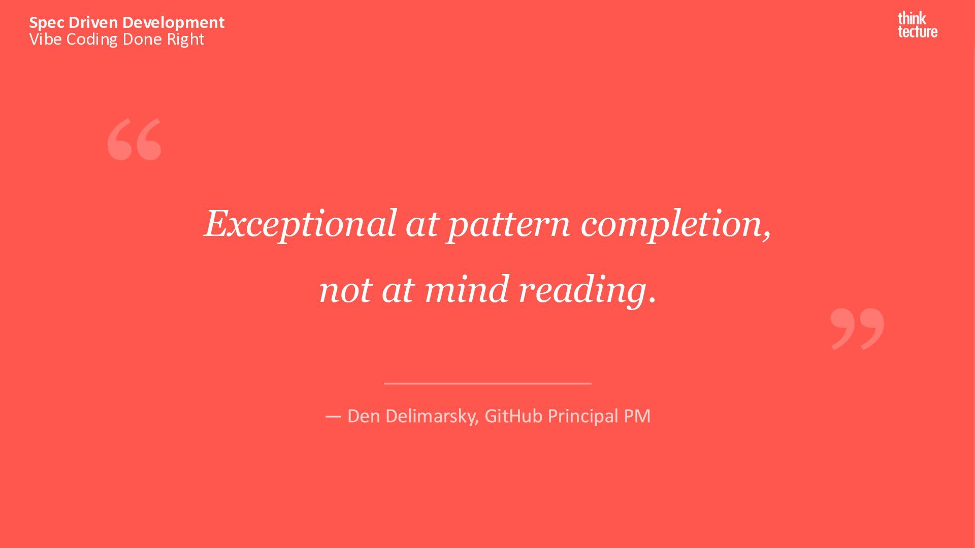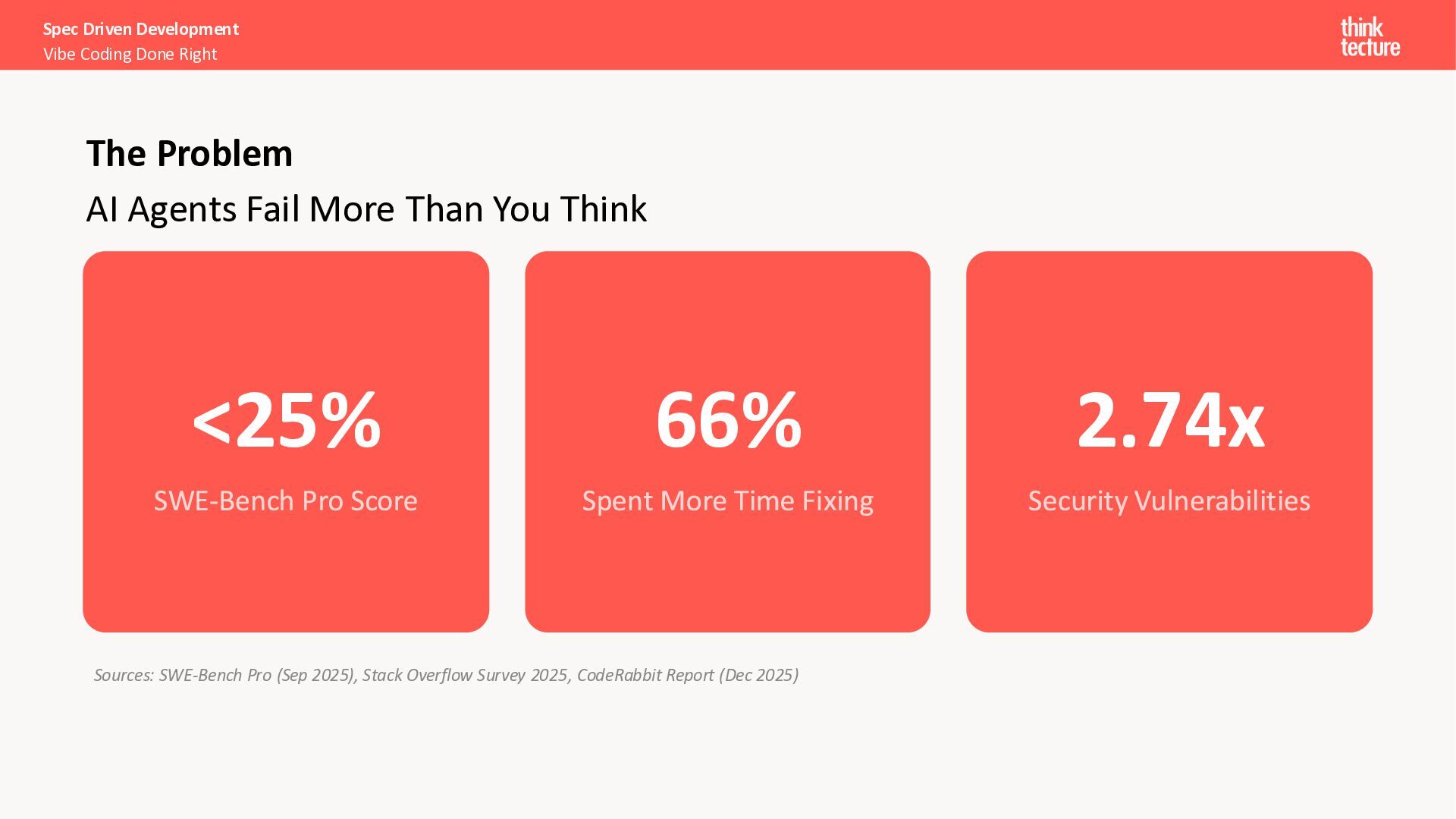 Implementation 250k Developers in 3 Months AWS Kiro - The New Stack 94% Satisfaction Score Delta Airlines (re:Invent) 16k+ Spec Kit Stars in Week 1 GitHub (Sept 2025) Specs are the new code. 80-90% of our work as programmers is structured communication Sean Grove, OpenAI Sources: AWS Kiro, AWS re:invent (2025), The New Code – AI Engineer (2025)