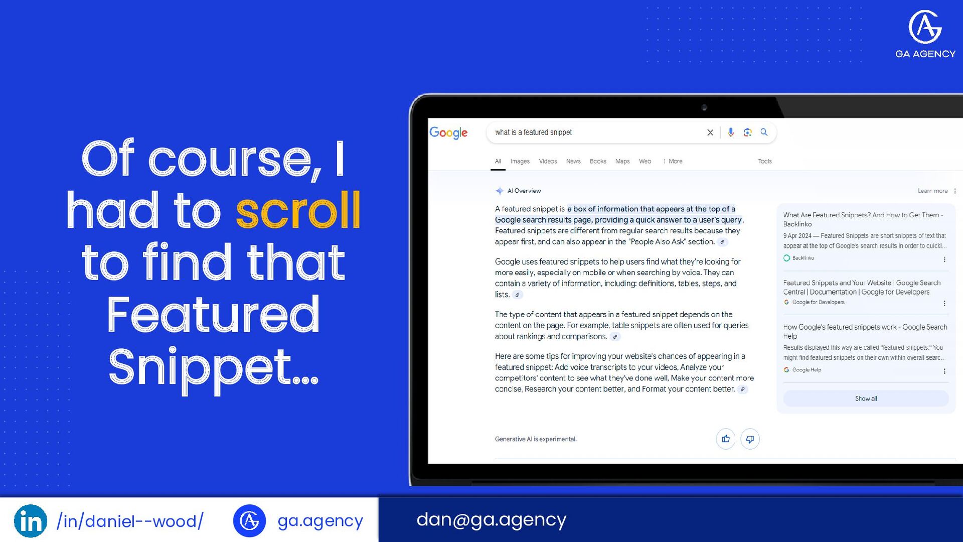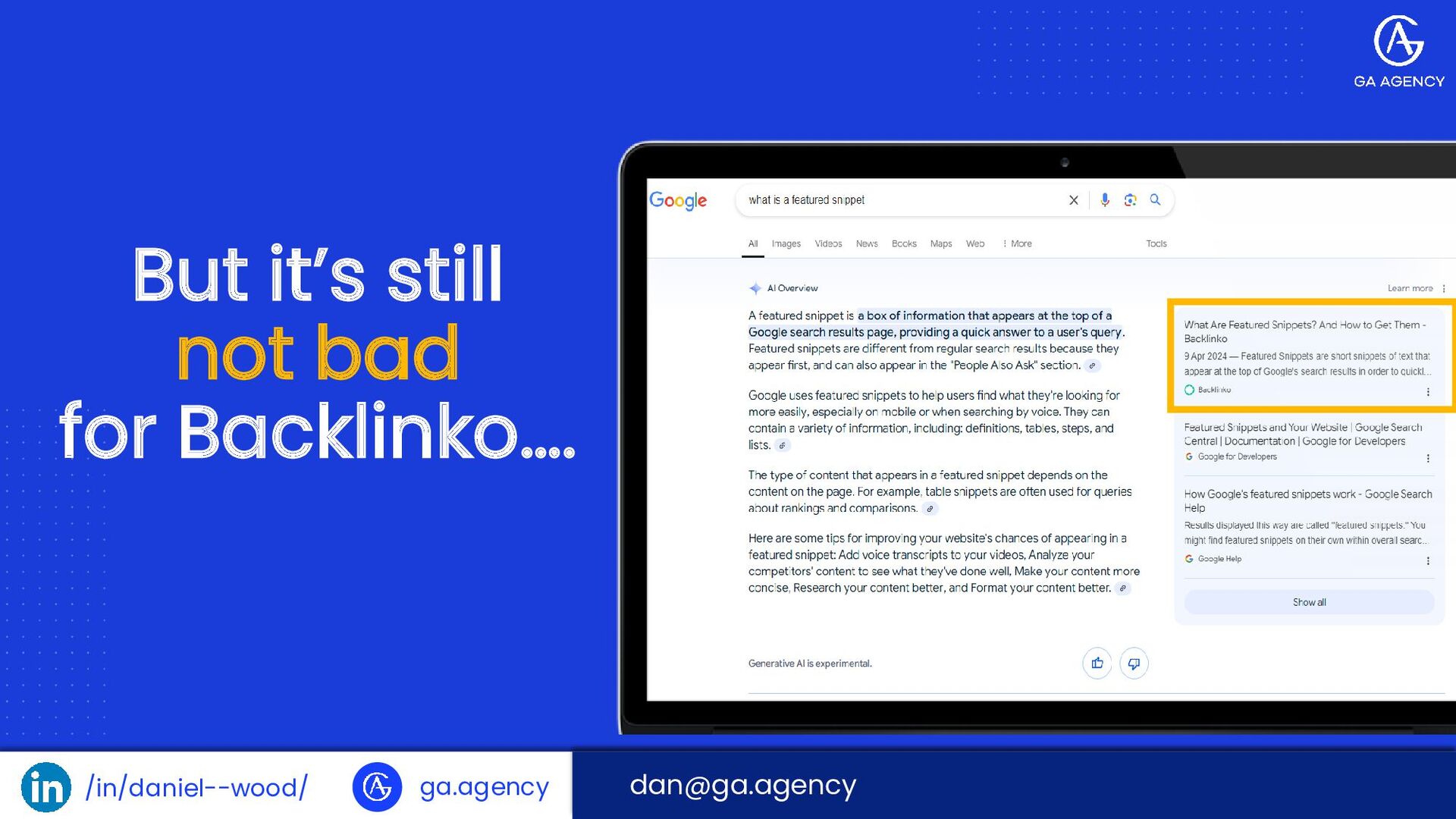 /in/daniel--wood/ ga.agency …And on the SERP they can have