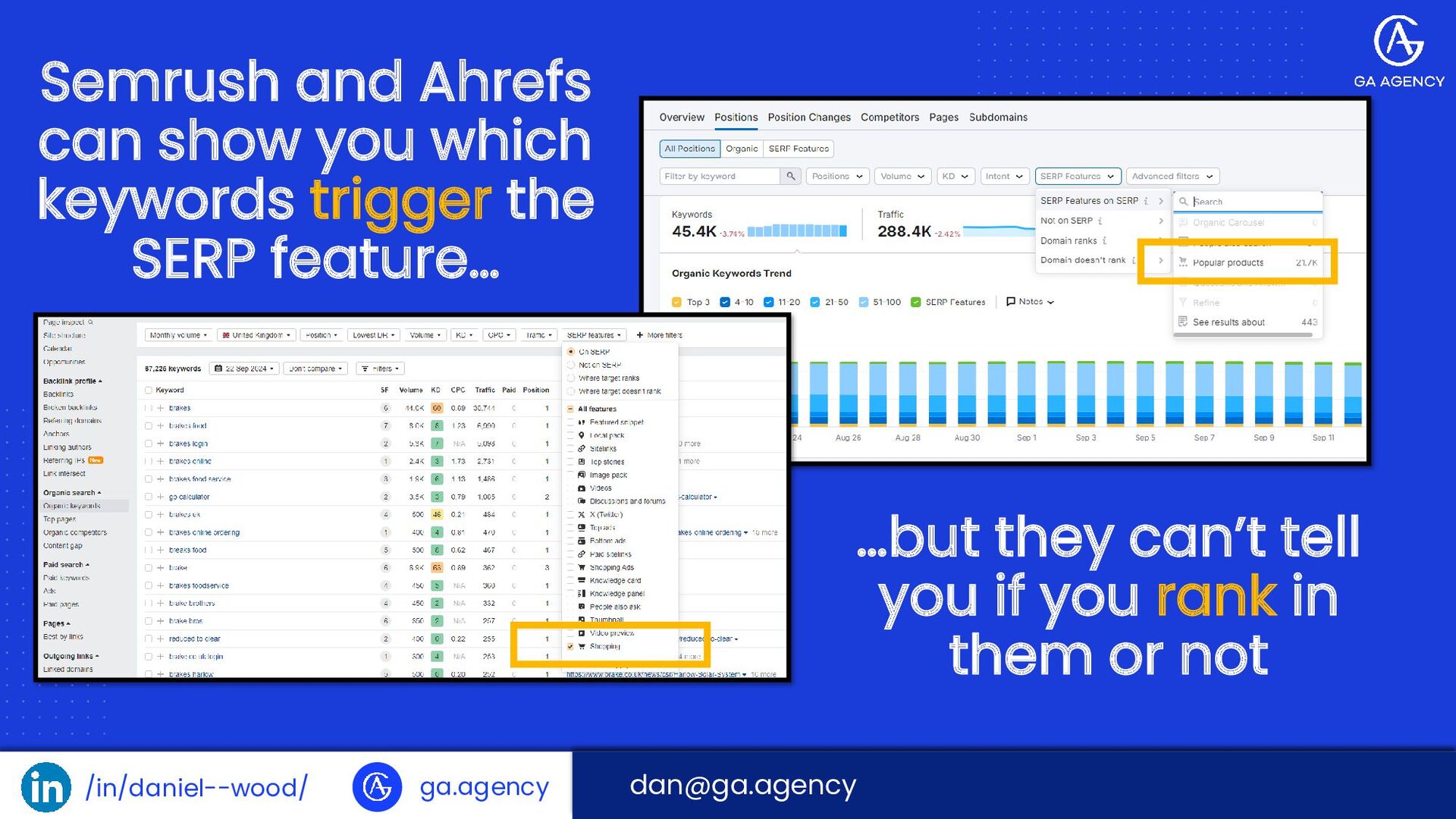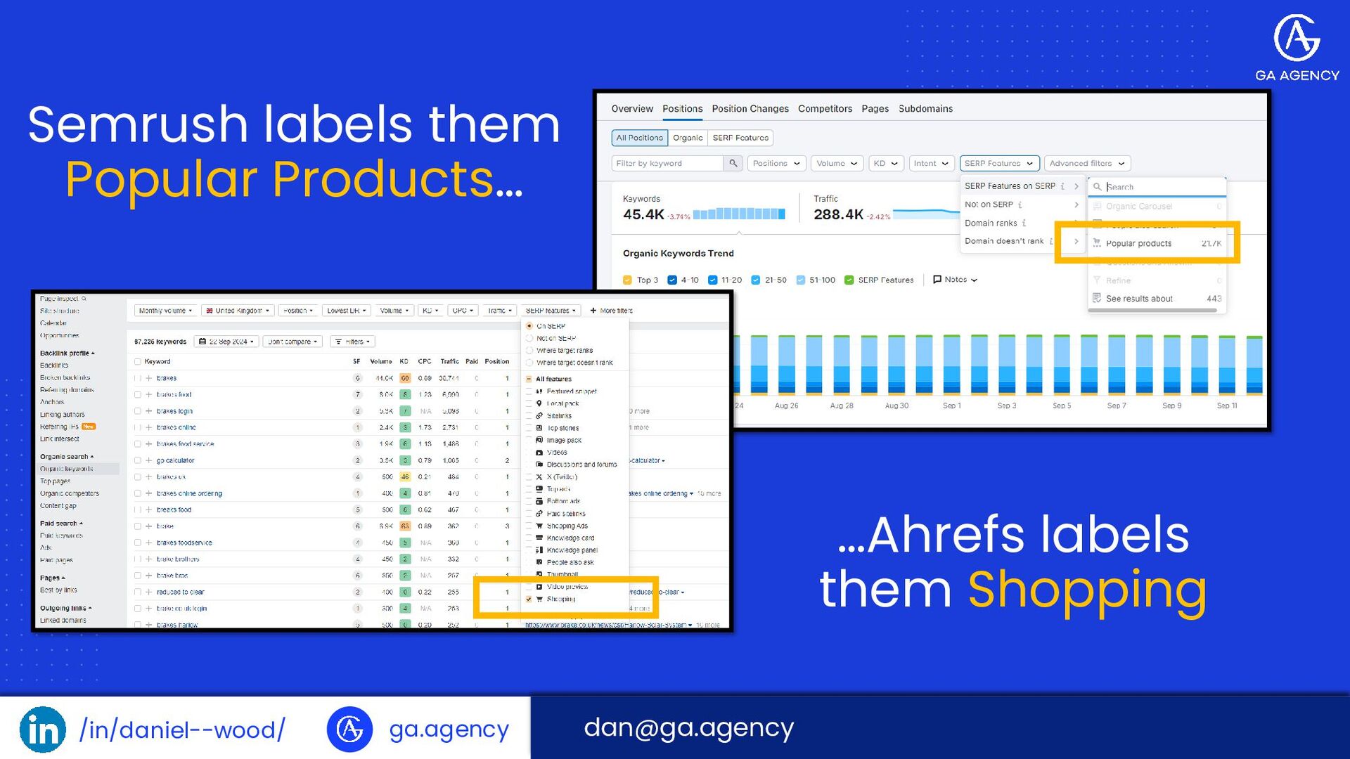 /in/daniel--wood/ ga.agency Semrush labels them Popular Products… …Ahrefs labels