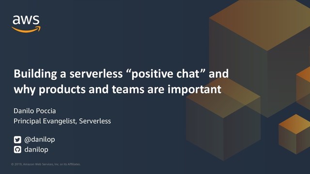 I wanted to build something to improve the way we communicate, a 'positive chat' that rejects sentences with negative sentiment and translates messages to be more inclusive. As I was building, I thought: What are the issues for serverless developments? What about teams? This session is the result.