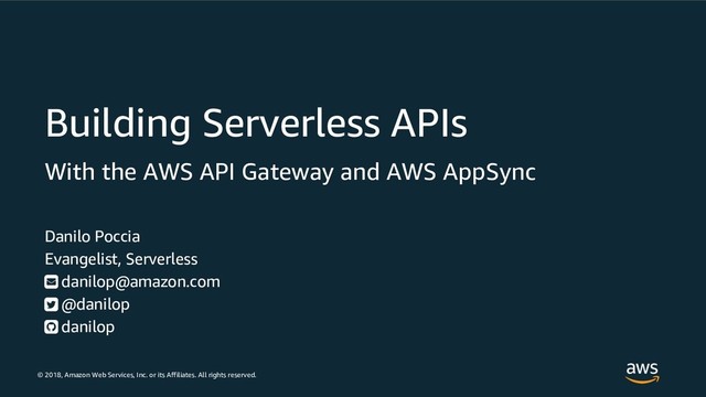 In this session, we’ll review features and best practices for building serverless backends using REST and GraphQL. We’ll use tools such as Lambda functions, the Amazon API Gateway and AWS AppSync to expose your business logic or your legacy applications using an open interface and an event-driven architecture. Managing our infrastructure as code, with tools such as AWS SAM, we can implement a CI/CD pipeline that can speed up development and support safe deployments in production.