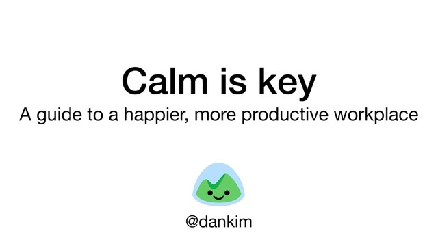 By the end of the talk, I hope you'll have some new ideas and inspiration to work toward a calmer, more productive work environment for you and your team.
