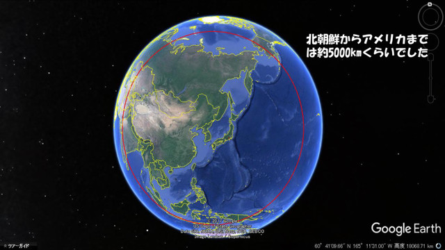 北朝鮮からアメリカまで は約5000kmくらいでした