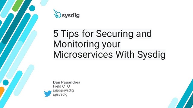 30 day free trial: https://sysdig.com/company/free-trial/ Monday, April 20 8am PDT / 4pm GMT K8s Security MasterClass Rancher & Sysdig Detecting anomalous activity in Rancher with Falco and Sysdig Secure Tuesday, April 21 10am PDT / 6pm GMT PCI Compliance in Containers & K8s Map PCI processes to containers and walk through a time-saving checklist Thursday, April 30 10am PDT / 6pm GMT Top 5 Cloud Native Pipeline Security Considerations Booz Allen Hamilton experts share best practices in securing software pipelines Register for our upcoming webinars sysdig.com/webinars