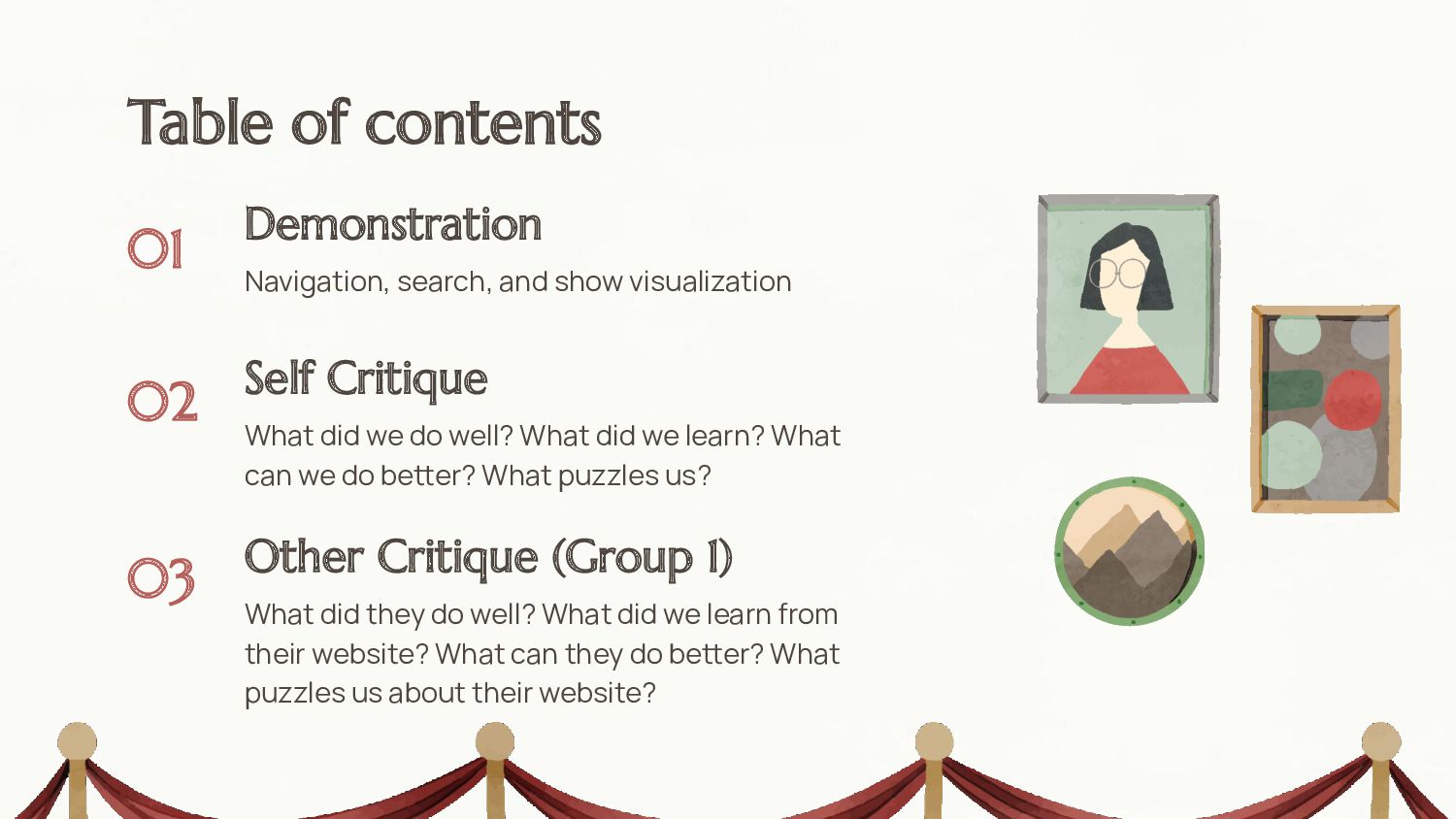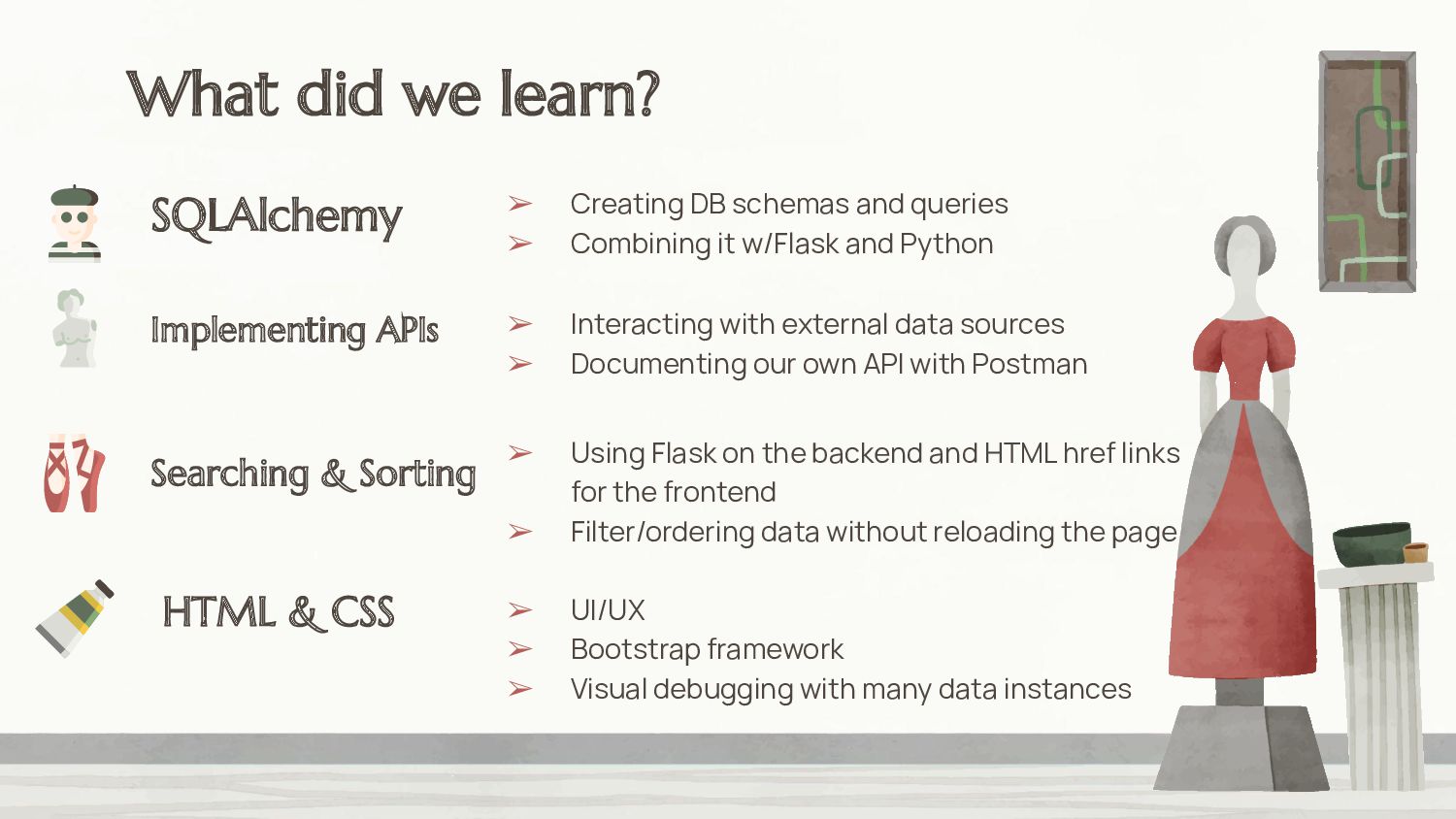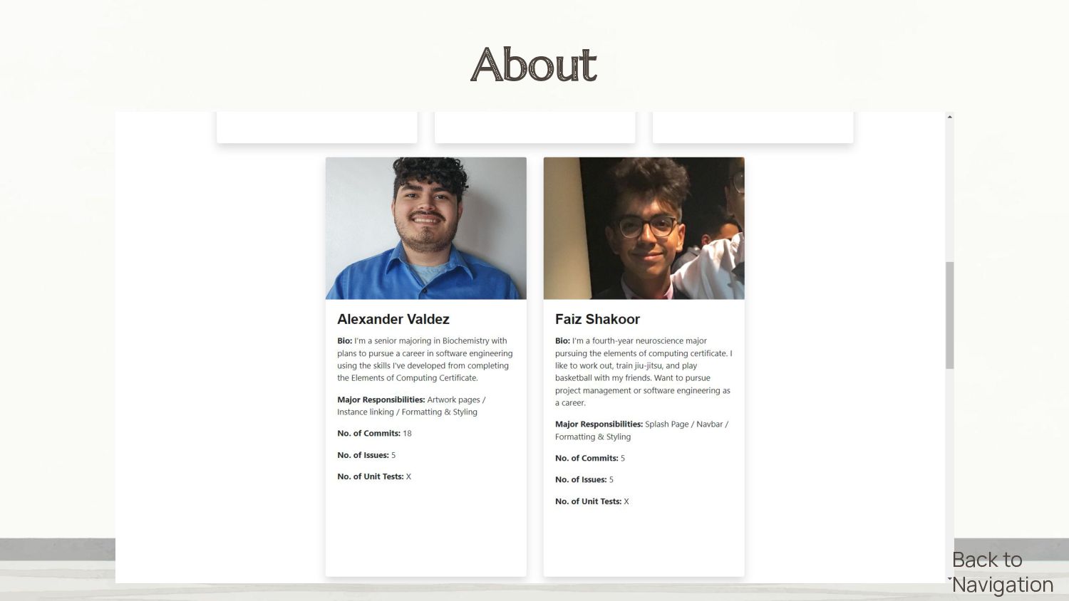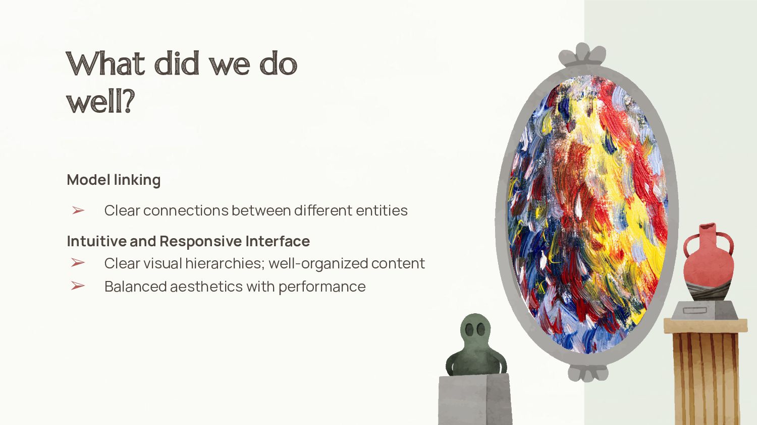the performance of a website ➢ This was seen with the pagination, the model instances were loaded in immediately as you moved between the pages. Challenges w/ React ➢ React can be diicult to work with at first and the group faced challenges trying to deploy the website through GCP.