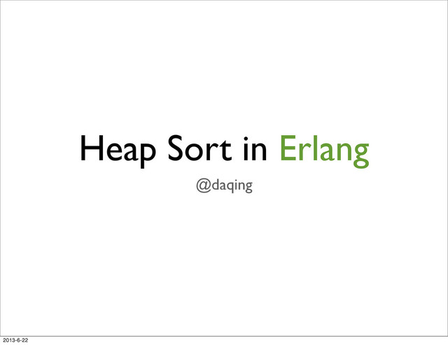 This keynote gives a short intro about how to implement the heap sort algorithm in Erlang.