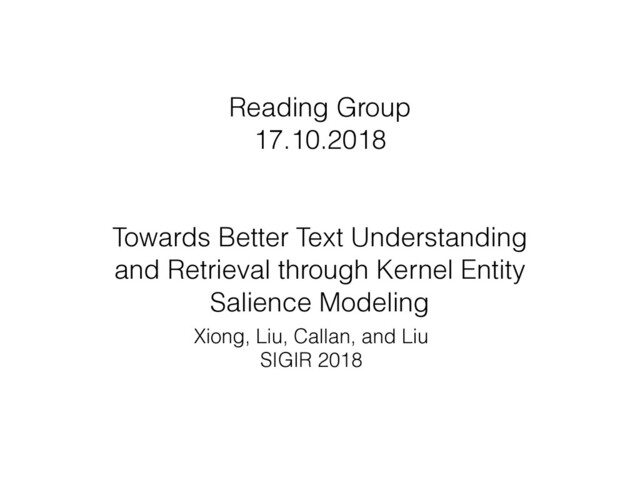 Summary of the paper "Towards Better Text Understanding and Retrieval through Kernel Entity Salience Modeling" presented at SIGIR 2018