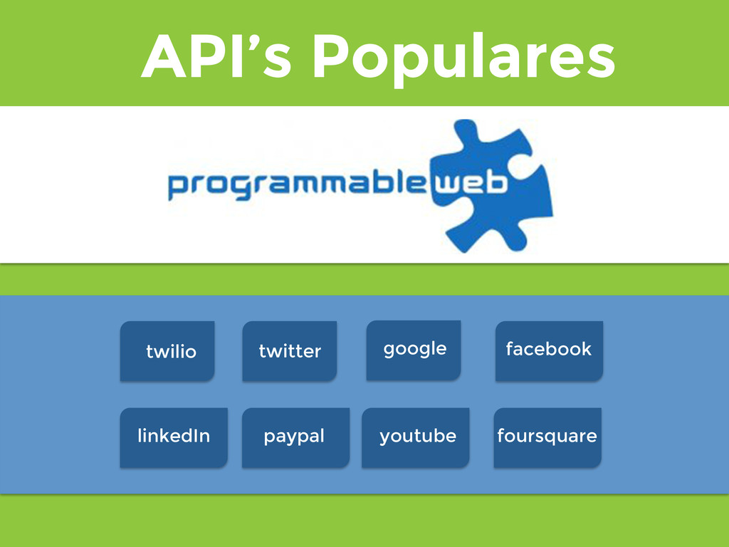 API’s Populares twilio twitter google facebook linkedIn paypal youtube foursquare