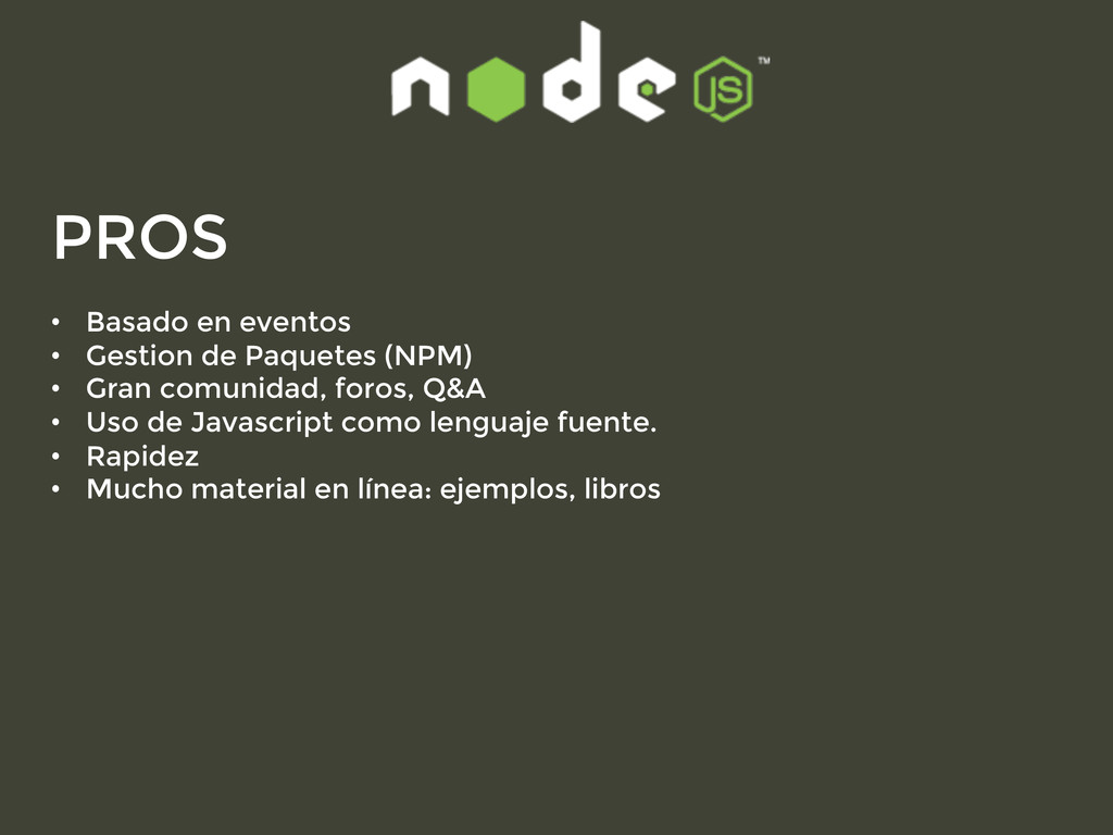 PROS • Basado en eventos • Gestion de Paquetes (NPM)