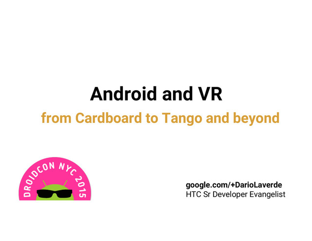 If you're new to VR, a detailed overview of the basics will get you up to speed along with a tutorial and code walkthrough featuring the latest Cardboard APIs as well as the Project Tango APIs which will enable real time positional tracking using depth maps. We will also review the different types of controller inputs and how to integrate and support IoT devices with VR.