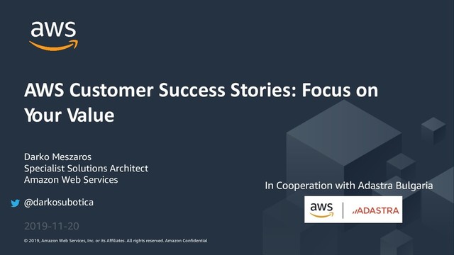 In this session we will talk about what is the Cloud and how does AWS and the innovation it brings, fit in that story. Why would you move to the cloud, and what are its benefits. And to hear some success stories from AWS Customers and how they focus on their value and let us worry about the rest.