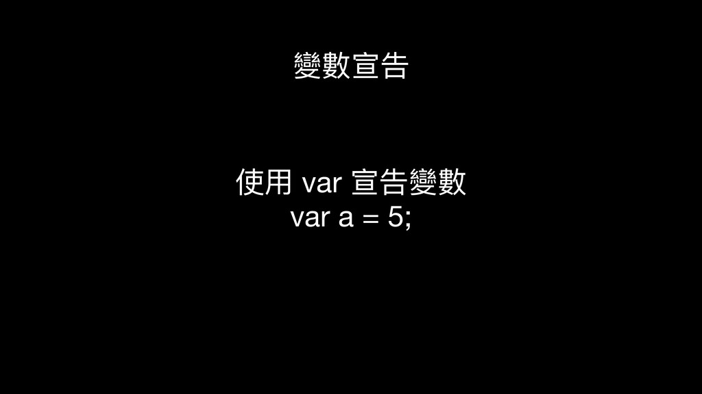 變數宣告 使⽤ var 宣告變數 var a = 5;
