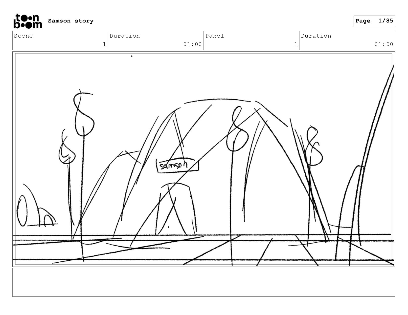 Scene 1 Duration 05:00 Panel 1 Duration 01:00 Samson story
