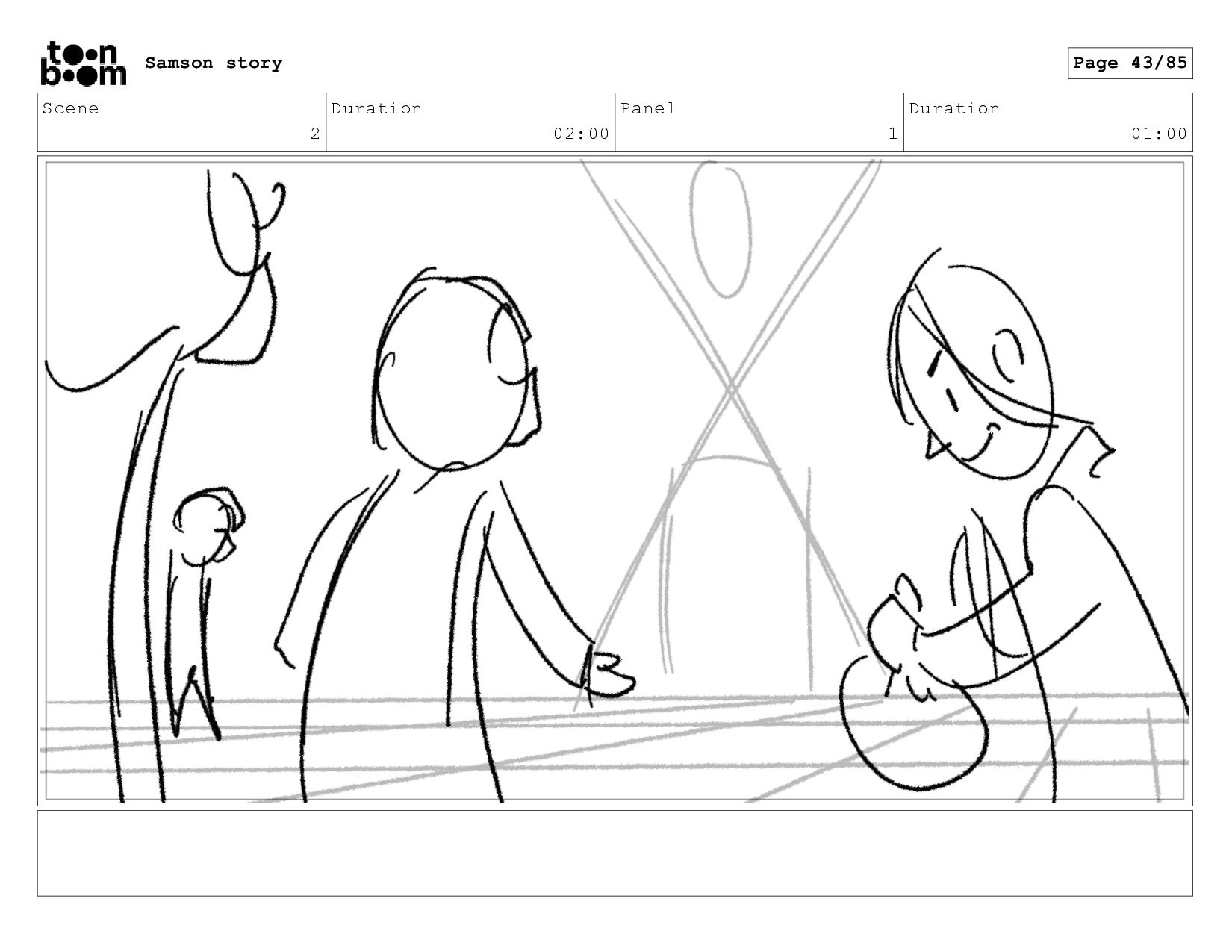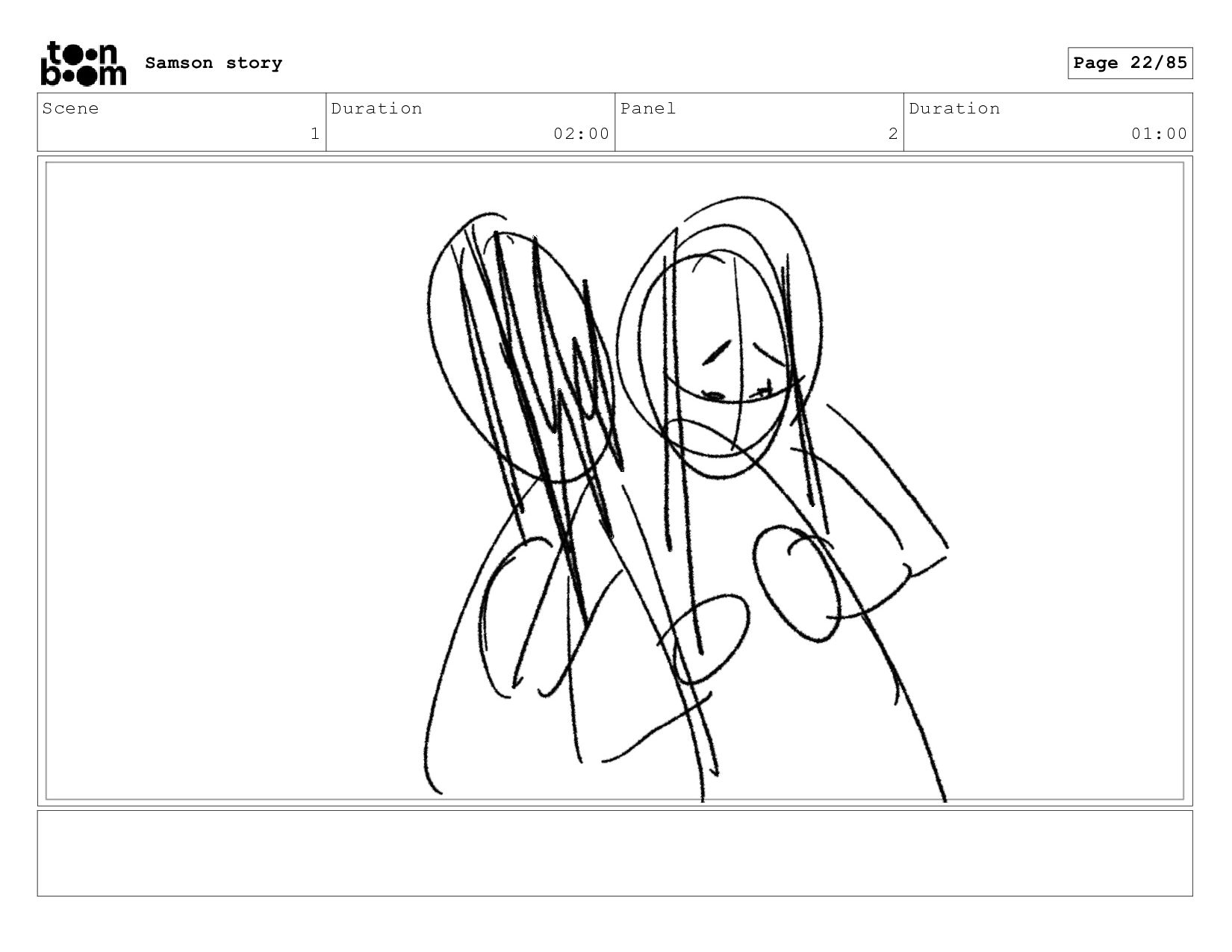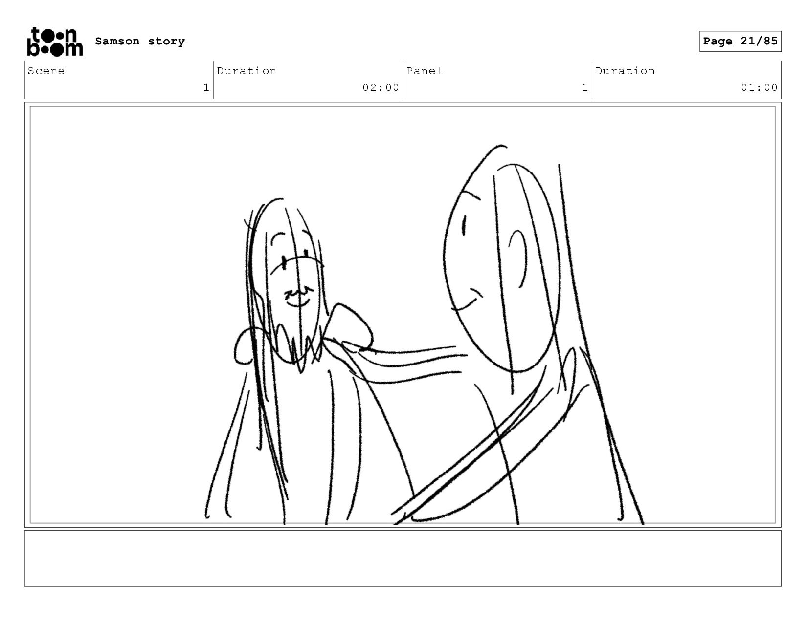 Scene 1 Duration 02:00 Panel 2 Duration 01:00 Samson story