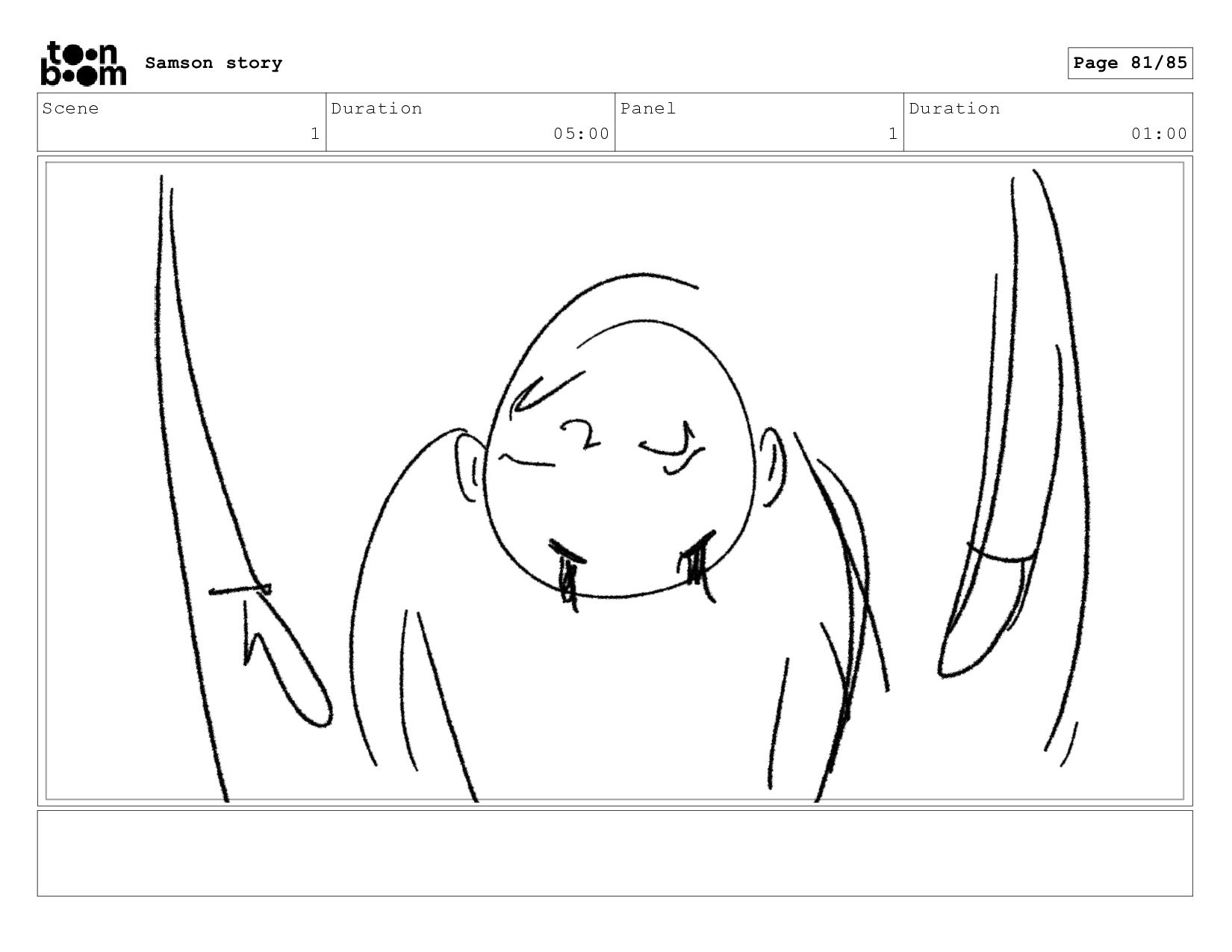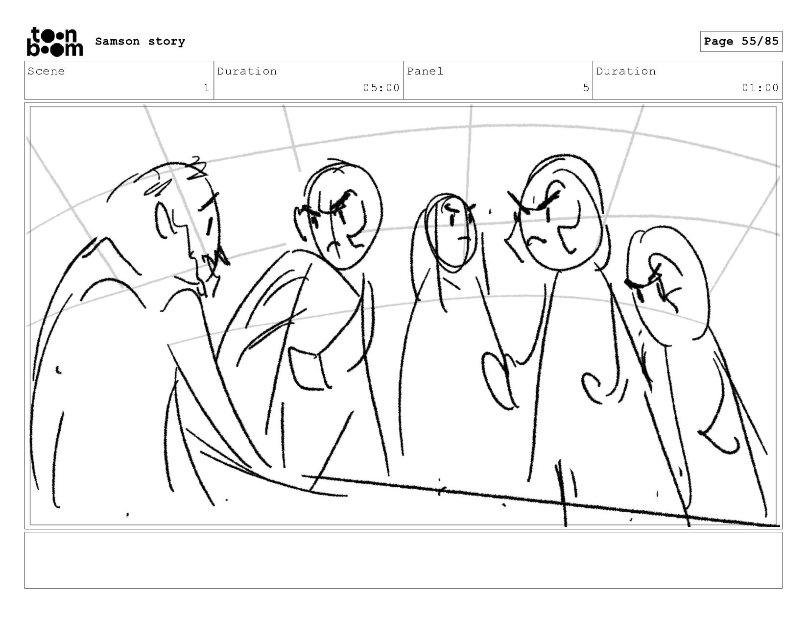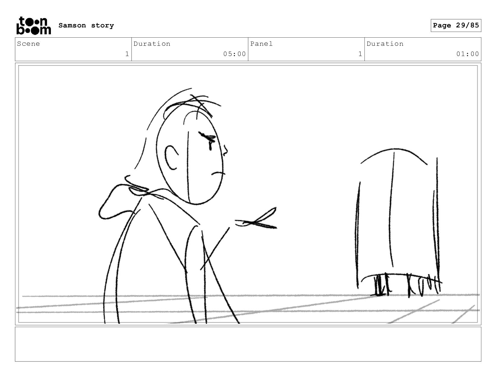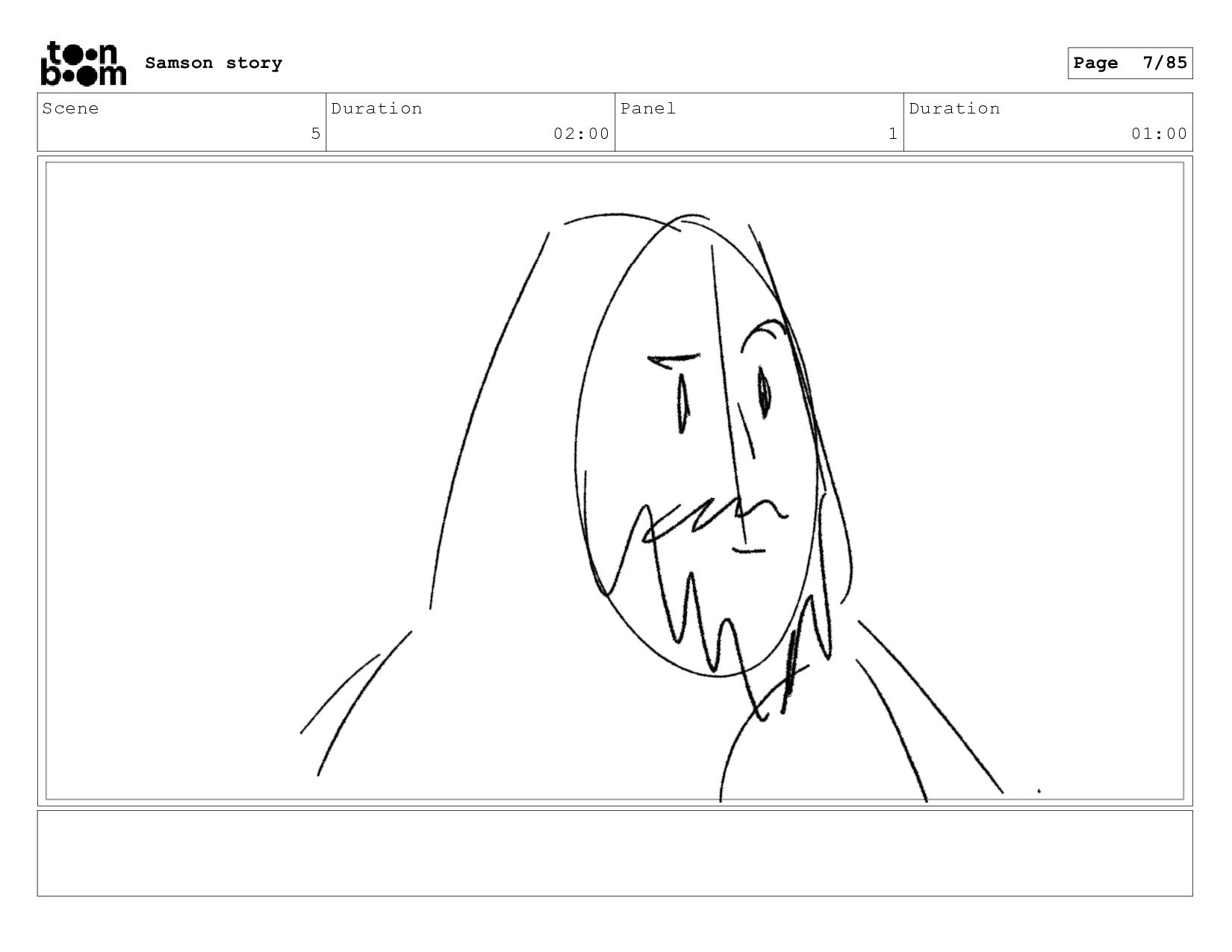 Scene 1 Duration 05:00 Panel 5 Duration 01:00 Samson story