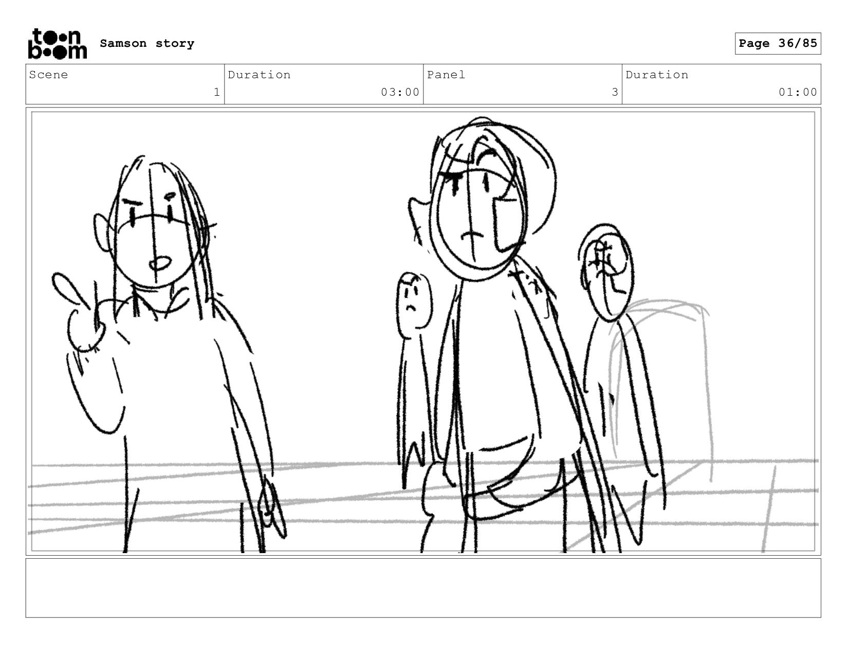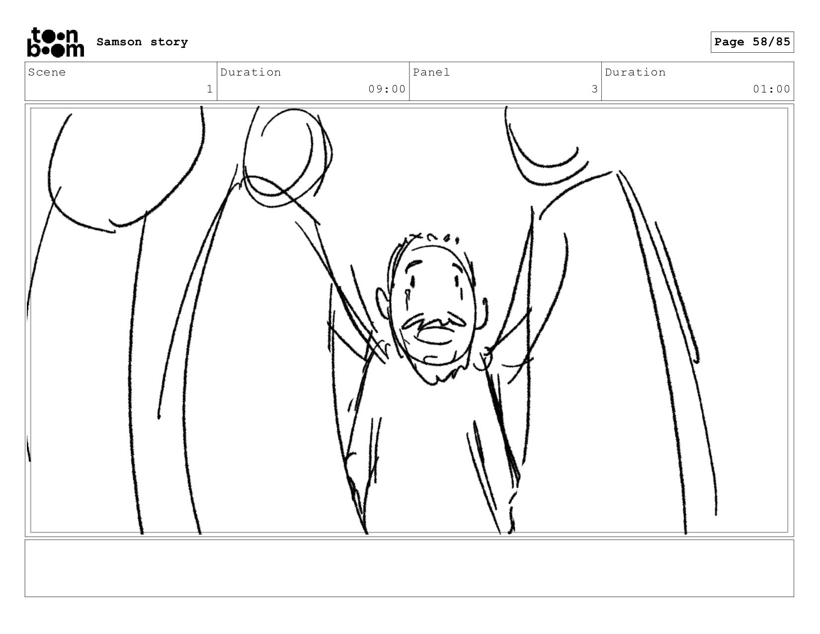 Scene 1 Duration 06:00 Panel 3 Duration 01:00 Samson story