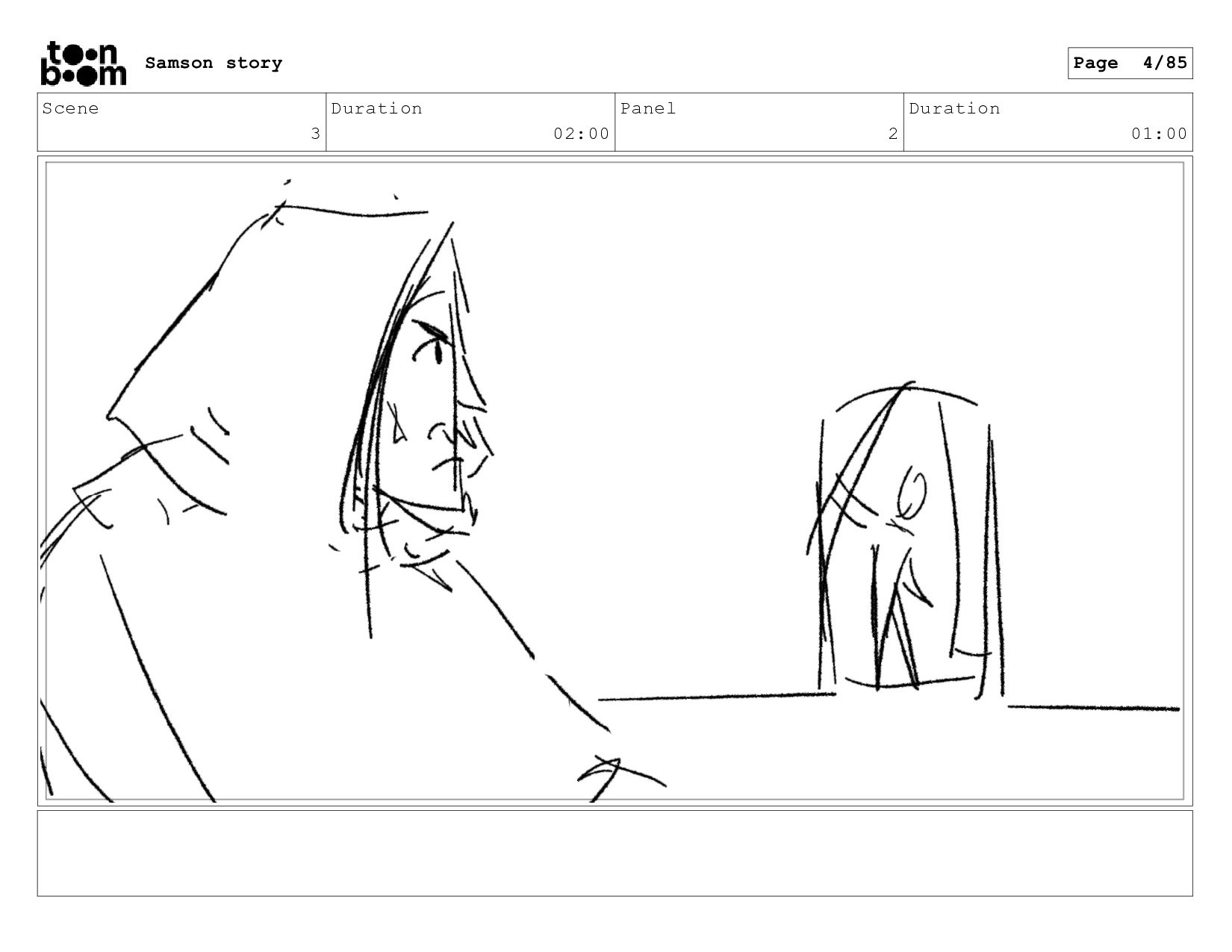 Scene 1 Duration 03:00 Panel 2 Duration 01:00 Samson story