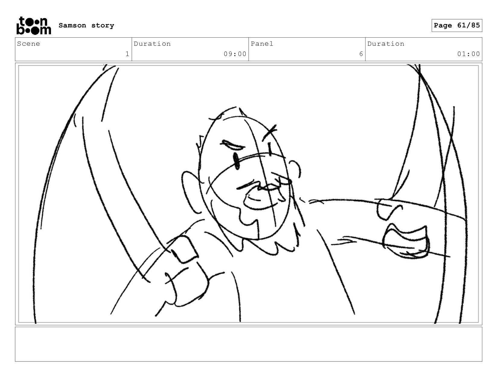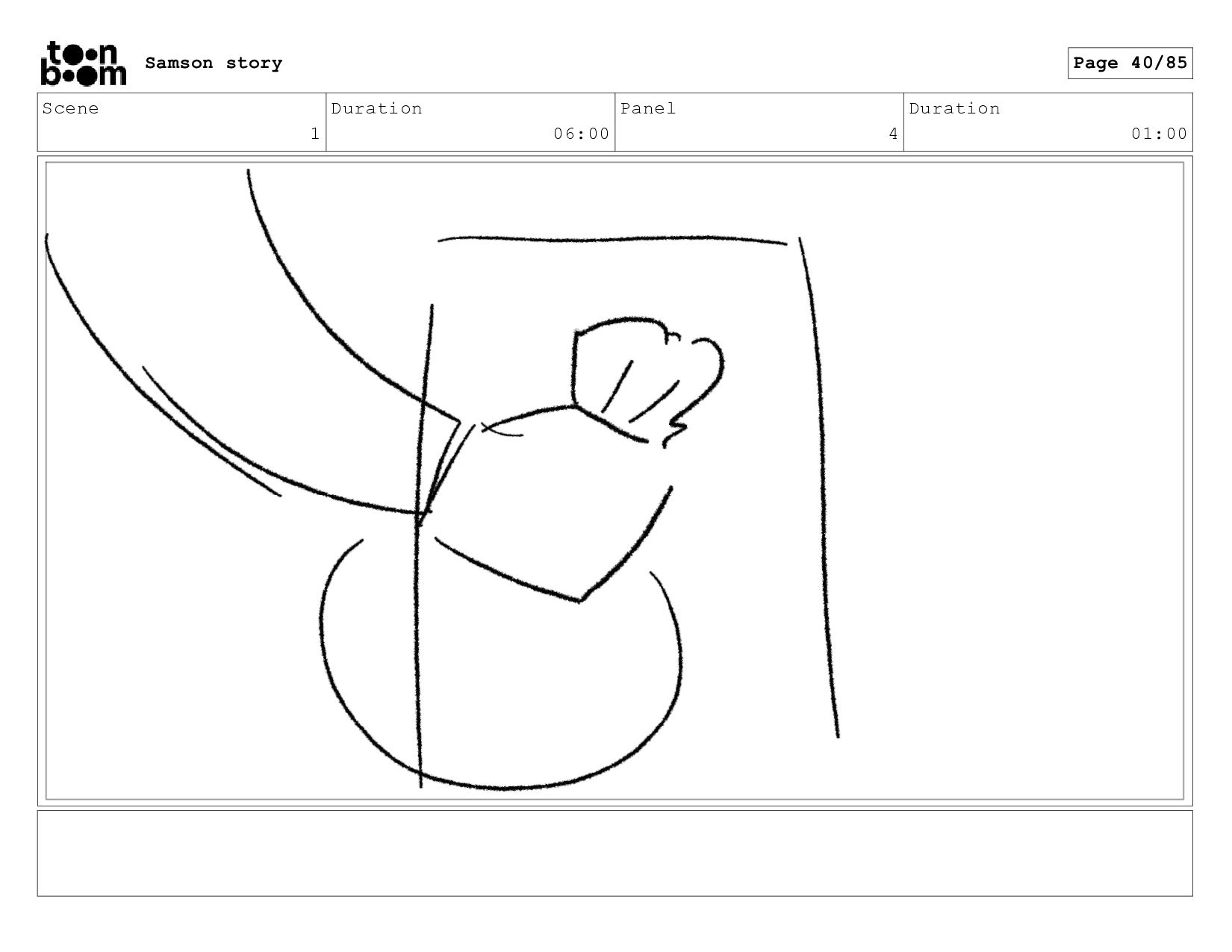 Scene 1 Duration 06:00 Panel 4 Duration 01:00 Samson story