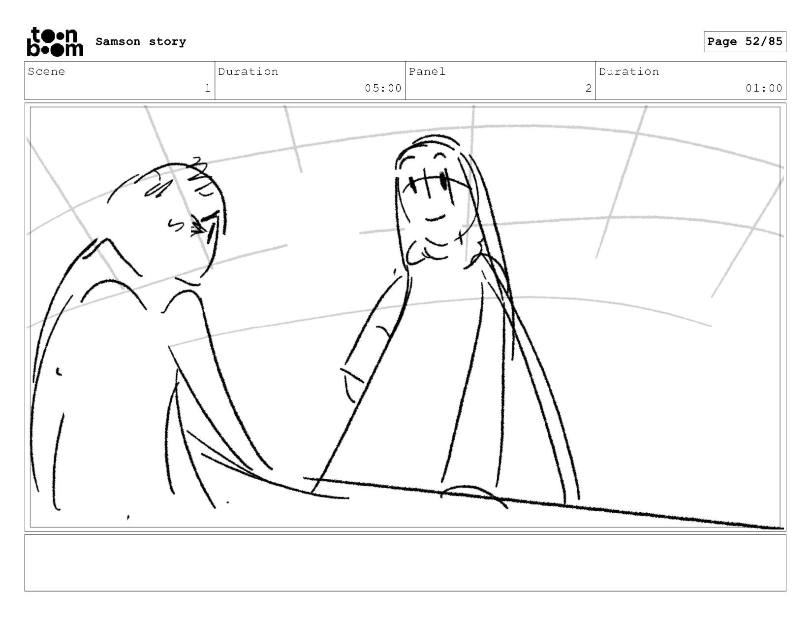 Scene 5 Duration 02:00 Panel 2 Duration 01:00 Samson story