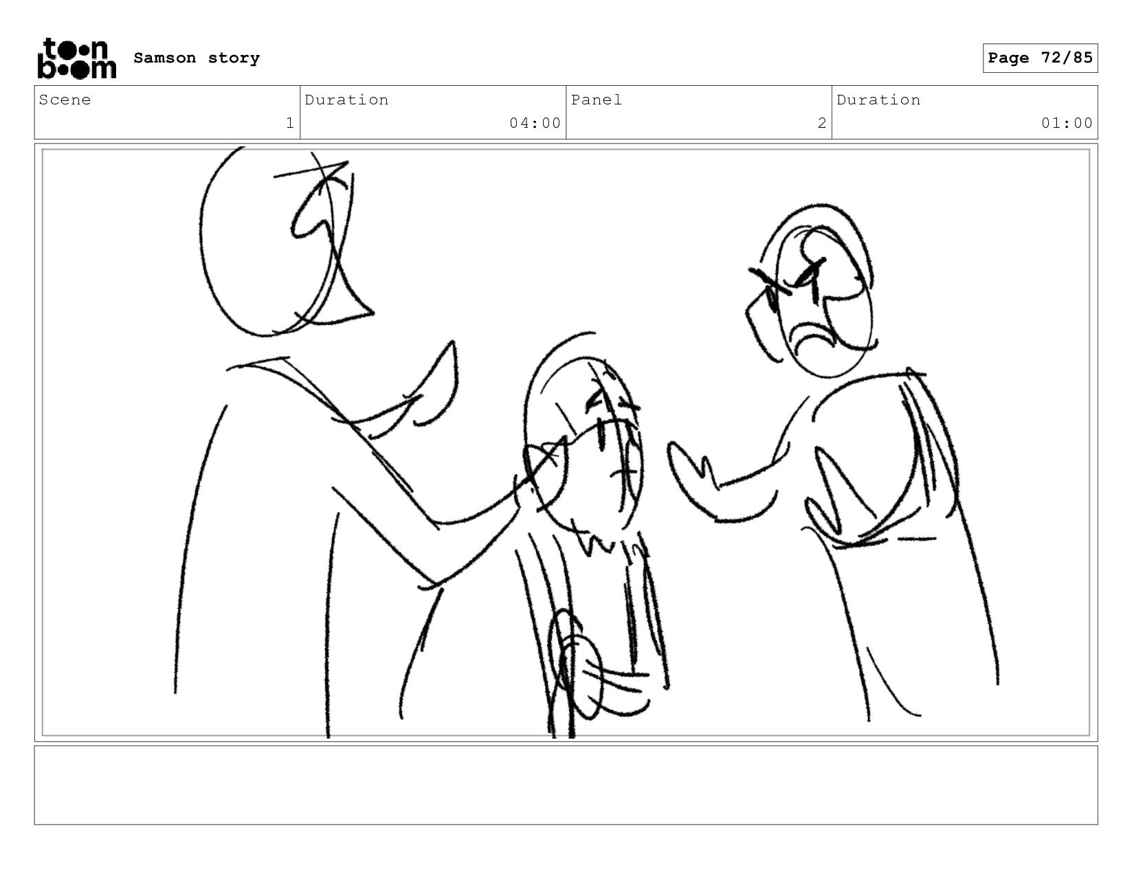 Scene 1 Duration 04:00 Panel 2 Duration 01:00 Samson story