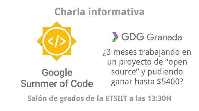 Charla informativa sobre Google Summer of Code el 30 de marzo 2018 en la Escuela Técnica Superior de Ingenierías Informáticas y Telecomunicación de Granada.