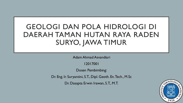 Title: GEOLOGI DAN POLA HIDROLOGI DI DAERAH TAMAN HUTAN RAYA RADEN SURYO, JAWA TIMUR