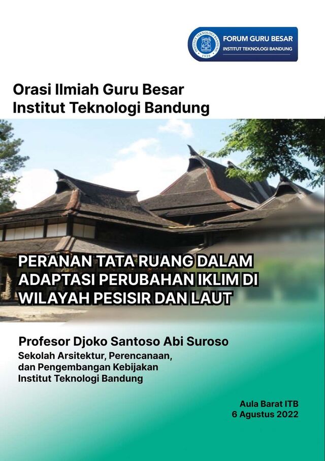 Suroso 6 Agustus 2022 55 Lincoln, S. (2017). Impacts of climate change on society in the coastal and marine environments of caribbean small island developing states (SIDS). Caribbean Marine Climate Change Report Card: Science Review,2017, 115-123. Mallette, A., Smith, T. F., Elrick-Barr, C., Blythe, J., & Plummer, R. (2021). Understanding Preferences for Coastal Climate Change Adaptation: ASystematicLiterature Review. Sustainability, 13(15), 8594. McClure, L., and Baker, D. (2013). Doing adaptation differently? Does neoliberalism influence adaptation planning in Queensland? In: Ruming, Kirstian, Randolph, Bill, Gurran, Nicole (Eds.), State of Australian Cities Conference 2013: Refereed Proceedings, State of AustralianCities ResearchNetwork. Shangri-LaHotel, Sydney, NSW. Mukherjee, T., Sharma, L. K., Kumar, V., Sharief, A., Dutta, R., Kumar, M., Joshi, B.D... & Chandra, K. (2021). Adaptive spatial planning of protected area network for conserving the Himalayan brown bear. Scienceofthe Total Environment,754, 142416. Nadin, V., Stead, D., Dabrowski, M., & Fernandez-Maldonado, A. M. (2021). Integrated, adaptive and participatory spatial planning: trends acrossEurope.Regional Studies,55(5), 791-803. O’Brien, K. (2012). Global environmental change II: from adaptation to deliberate transformation.Prog. Hum.Geogr. 36, 667-676. Olsson, P., Galaz, V., Boonstra, W.J. (2014). Sustainability transformations: aresilienceperspective. Ecol.Soc.19, art1.