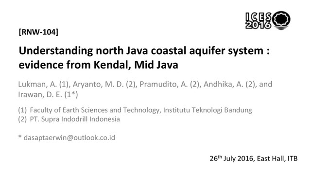 The first author is Ali Lukman, an ITB graduate, now pursuing master program in geology. He is now working as a engineering consultant for PT. Supra Indodrill (http://supraindodrill.com/).