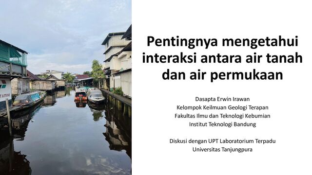 Erwin Irawan Kelompok Keilmuan Geologi Terapan Fakultas Ilmu dan Teknologi Kebumian Institut Teknologi Bandung Diskusi dengan UPT Laboratorium Terpadu Universitas Tanjungpura