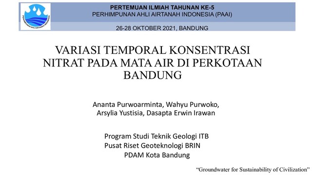 PERHIMPUNAN AHLI AIRTANAH INDONESIA (PAAI) 26-28 OKTOBER 2021, BANDUNG