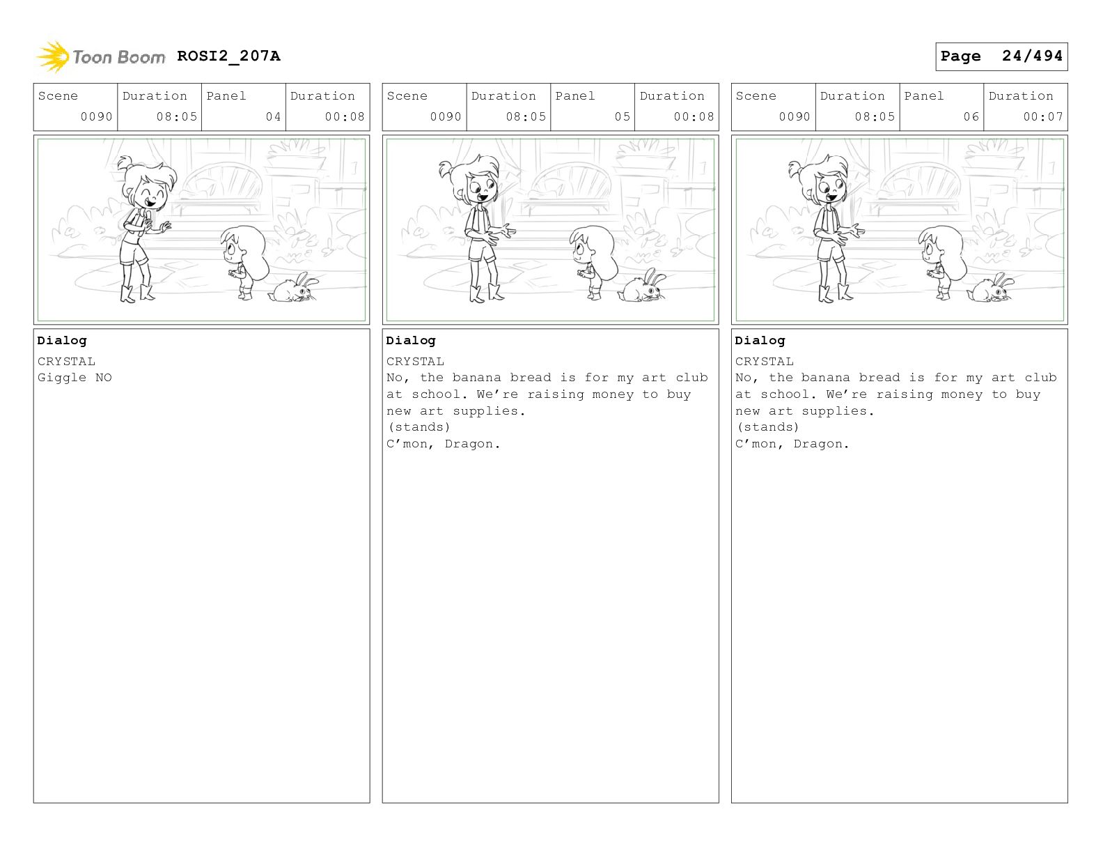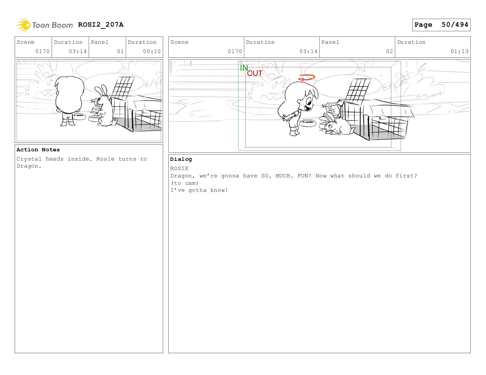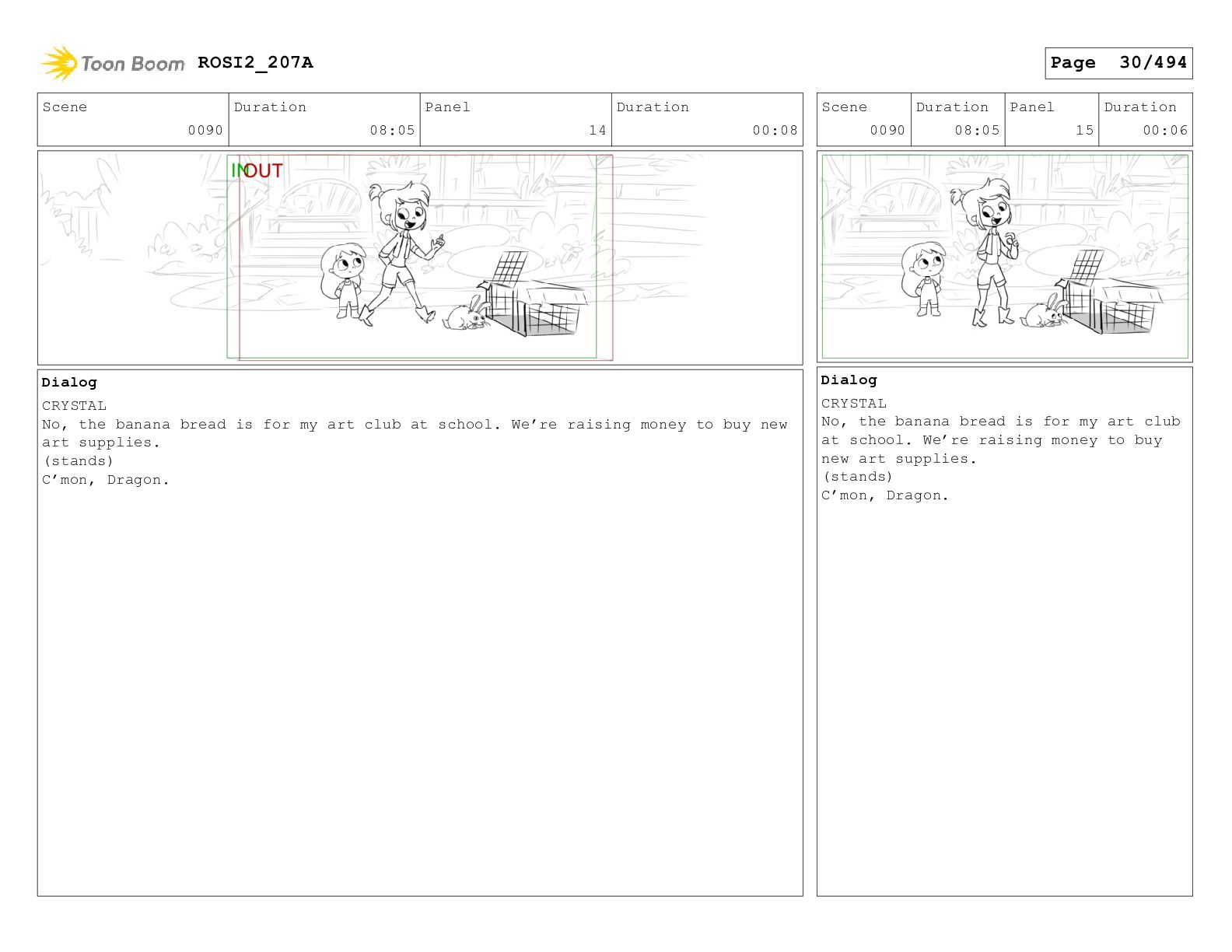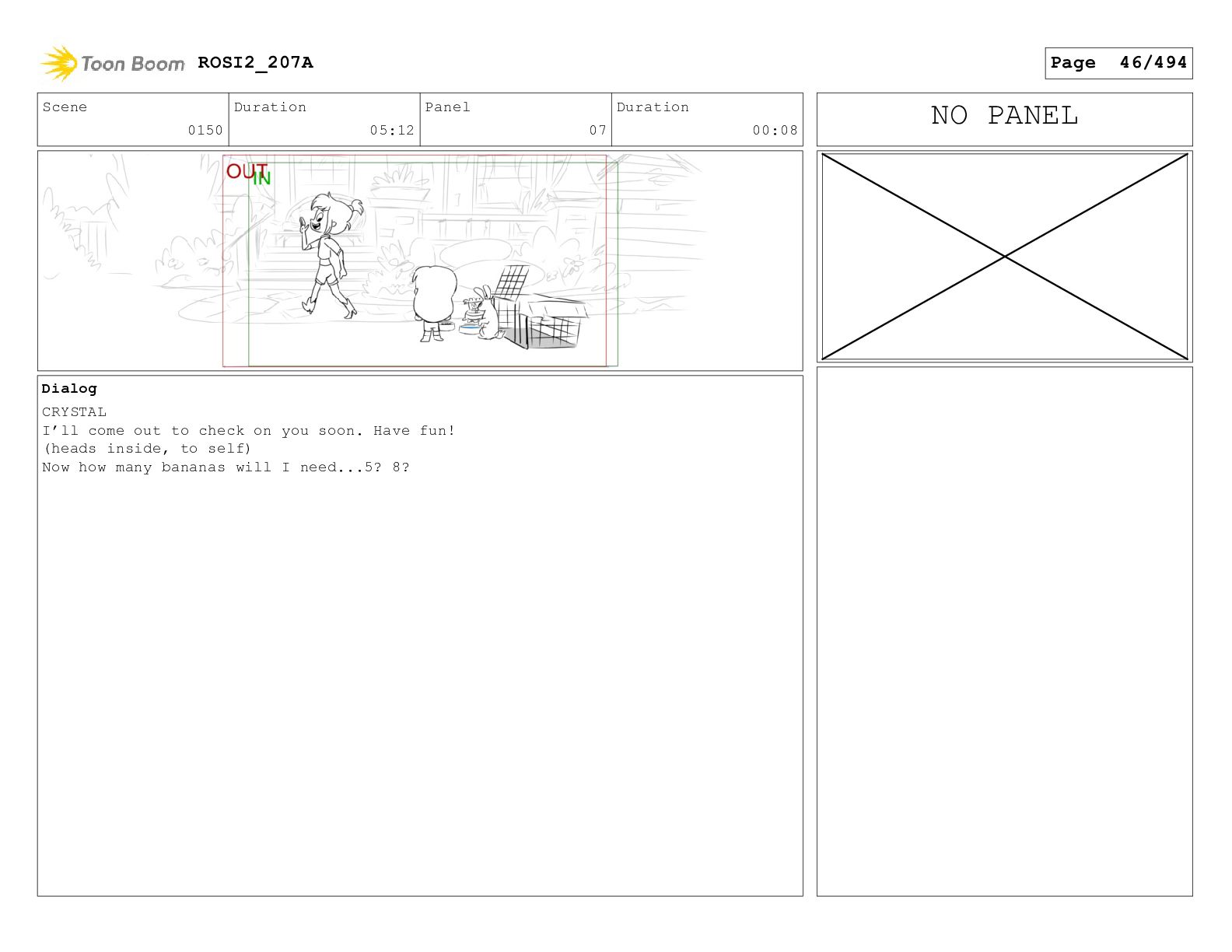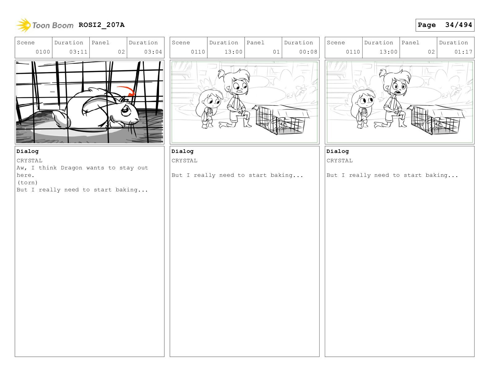 Crystal places two small bowls, a water pitcher, and a bag of rabbit food on the lawn. She pours water into a bowl. Scene 0140 Duration 06:02 Panel 02 Duration 00:18 Dialog 16 CRYSTAL This bowl’s for his water. And this one’s for his food. Action Notes Crystal places two small bowls, a water pitcher, and a bag of rabbit food on the lawn. She pours water into a bowl. Scene 0140 Duration 06:02 Panel 03 Duration 02:21 Dialog 16 CRYSTAL This bowl’s for his water. And this one’s for his food. Action Notes Crystal places two small bowls, a water pitcher, and a bag of rabbit food on the lawn. She pours water into a bowl. ROSI2_207A Page 41/494