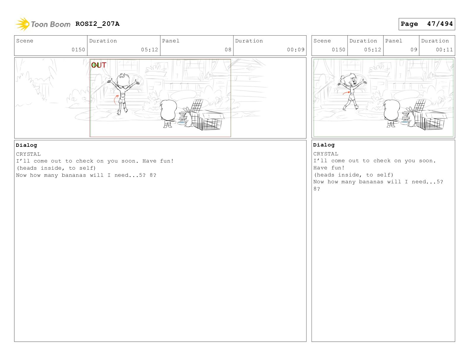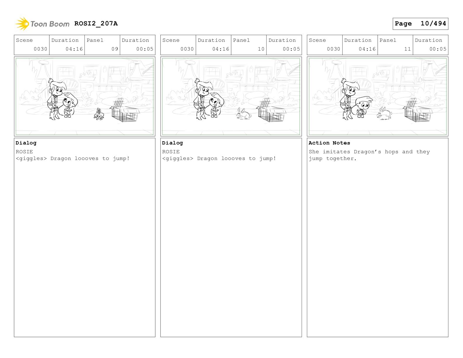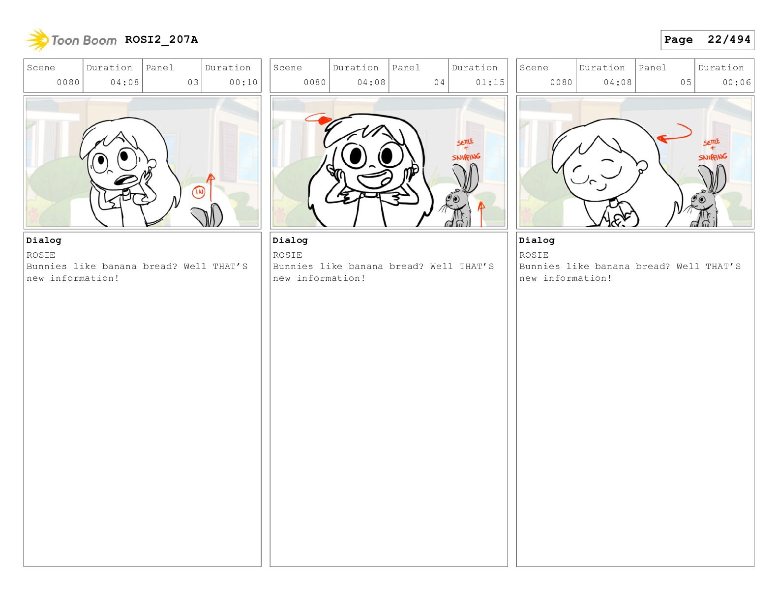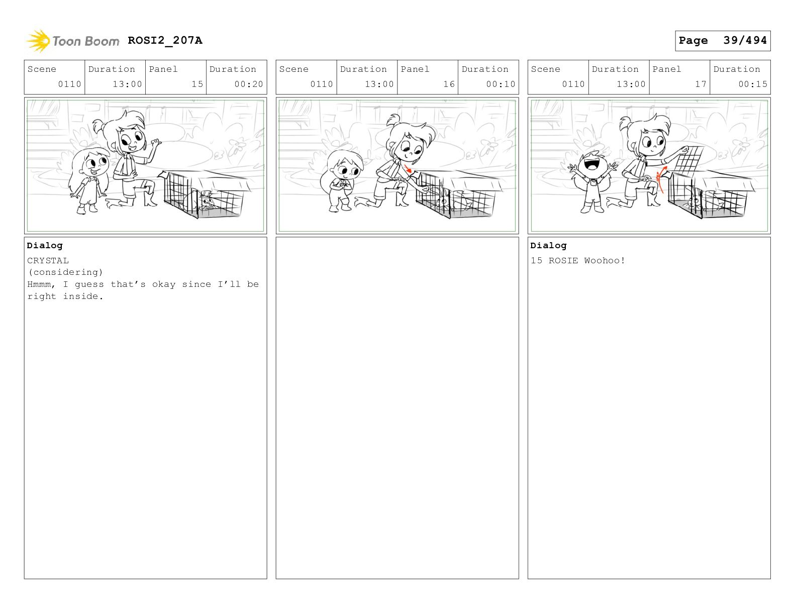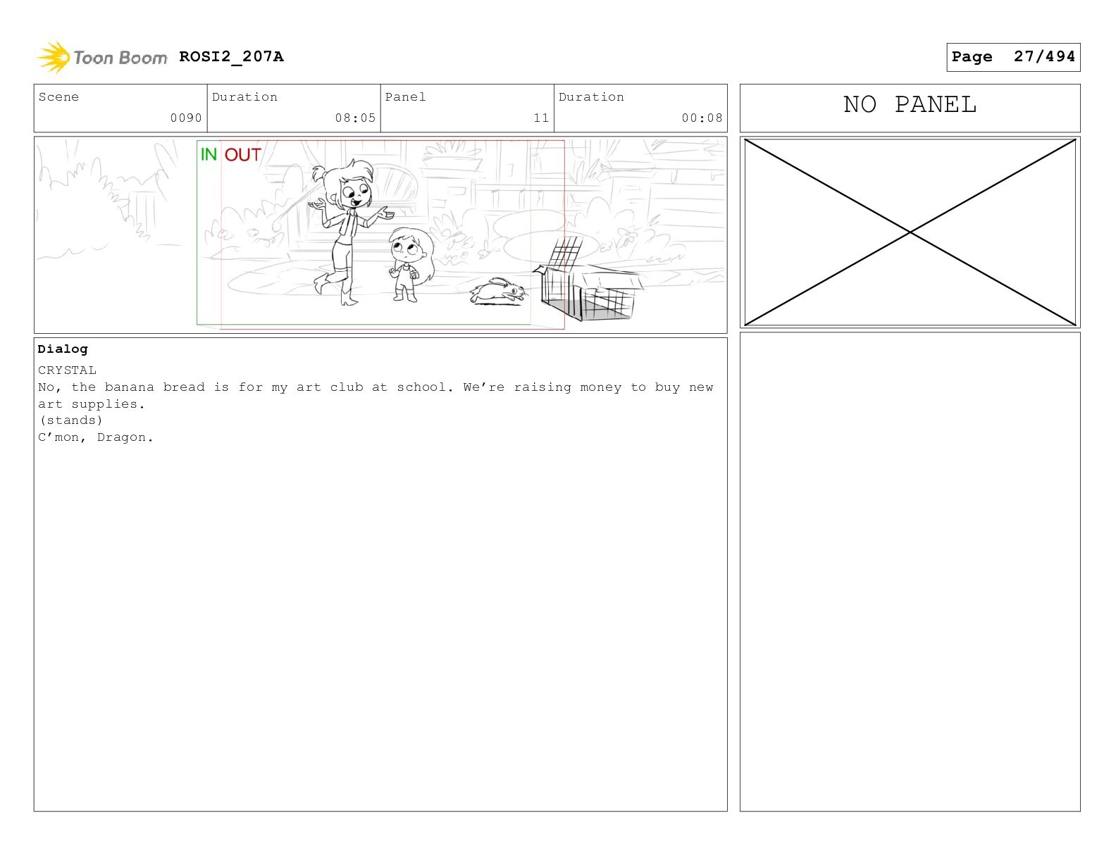 Crystal places two small bowls, a water pitcher, and a bag of rabbit food on the lawn. She pours water into a bowl. Scene 0140 Duration 06:02 Panel 02 Duration 00:18 Dialog 16 CRYSTAL This bowl’s for his water. And this one’s for his food. Action Notes Crystal places two small bowls, a water pitcher, and a bag of rabbit food on the lawn. She pours water into a bowl. Scene 0140 Duration 06:02 Panel 03 Duration 02:21 Dialog 16 CRYSTAL This bowl’s for his water. And this one’s for his food. Action Notes Crystal places two small bowls, a water pitcher, and a bag of rabbit food on the lawn. She pours water into a bowl. ROSI2_207A Page 41/494