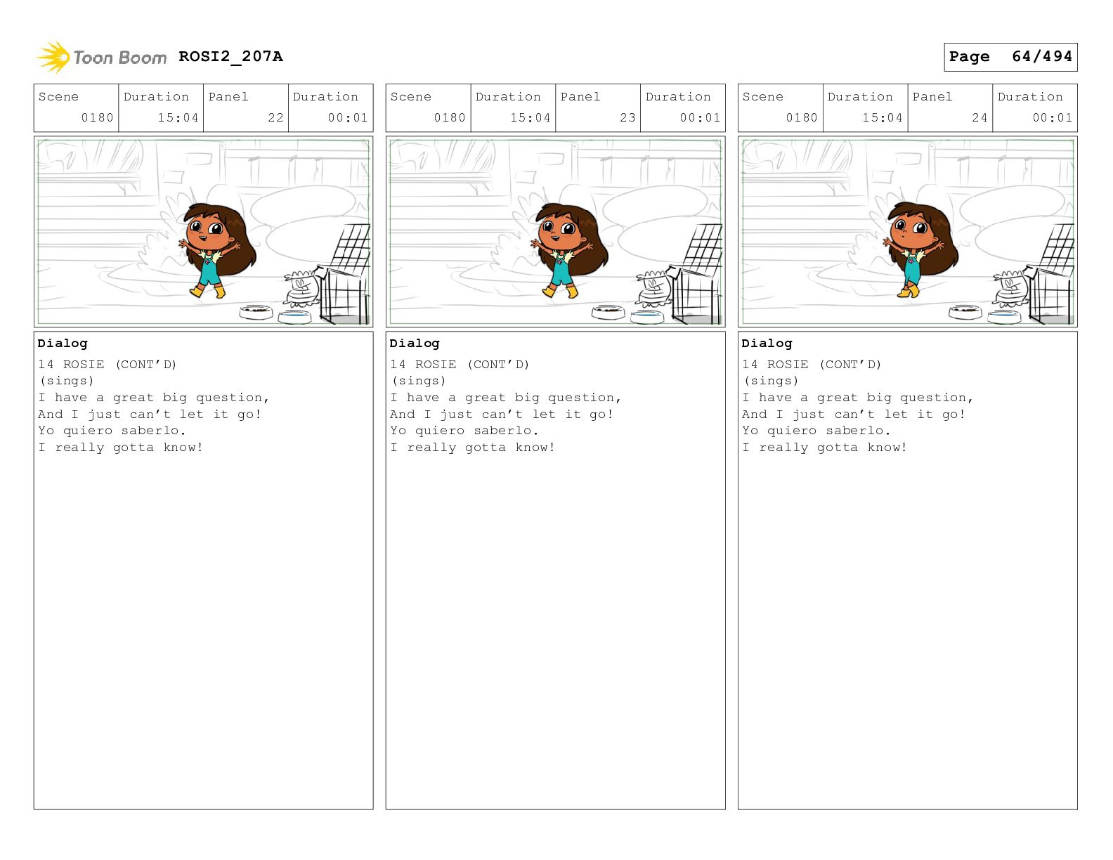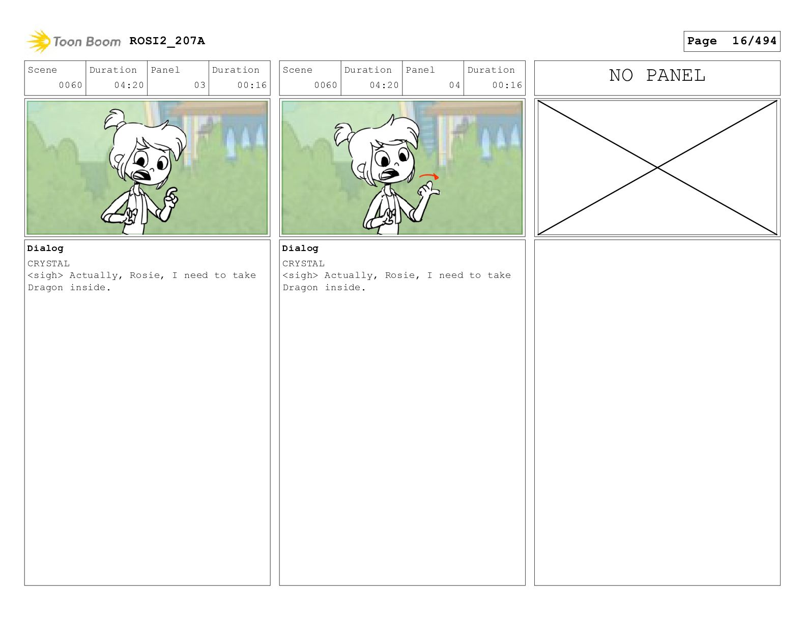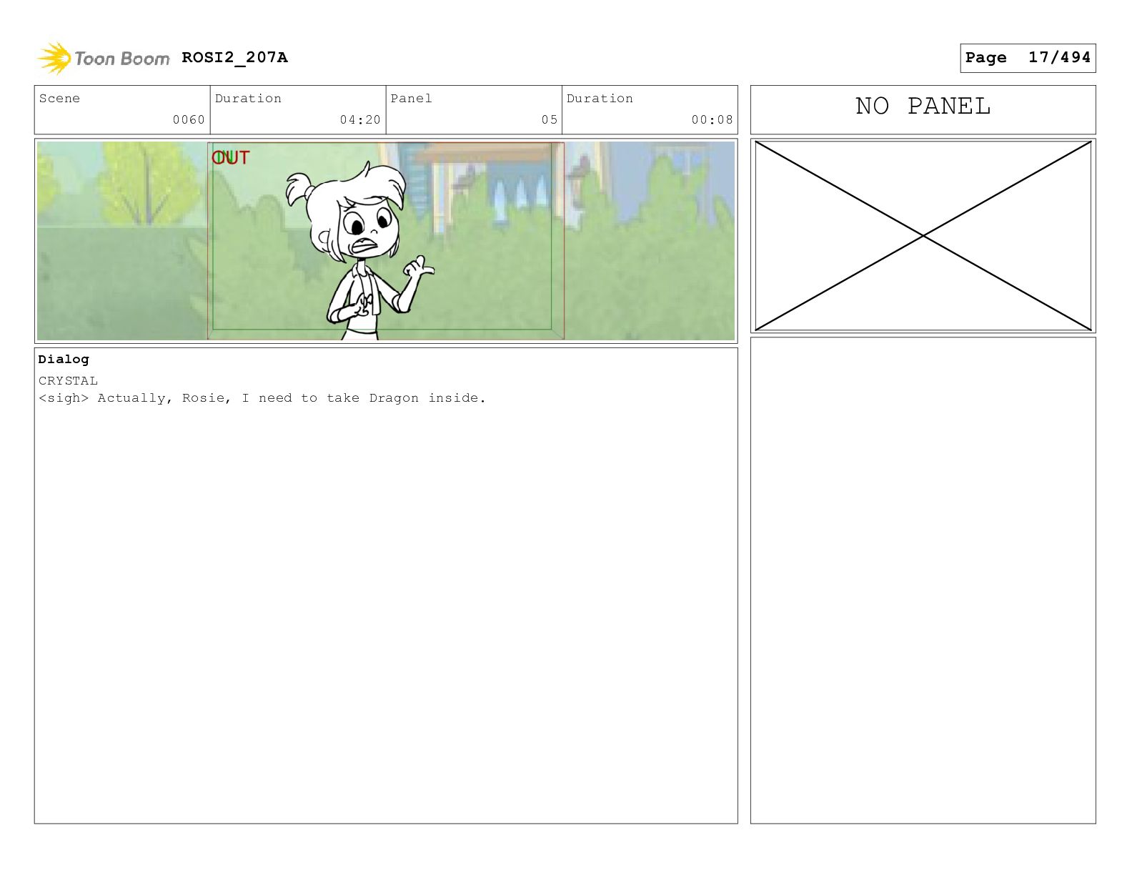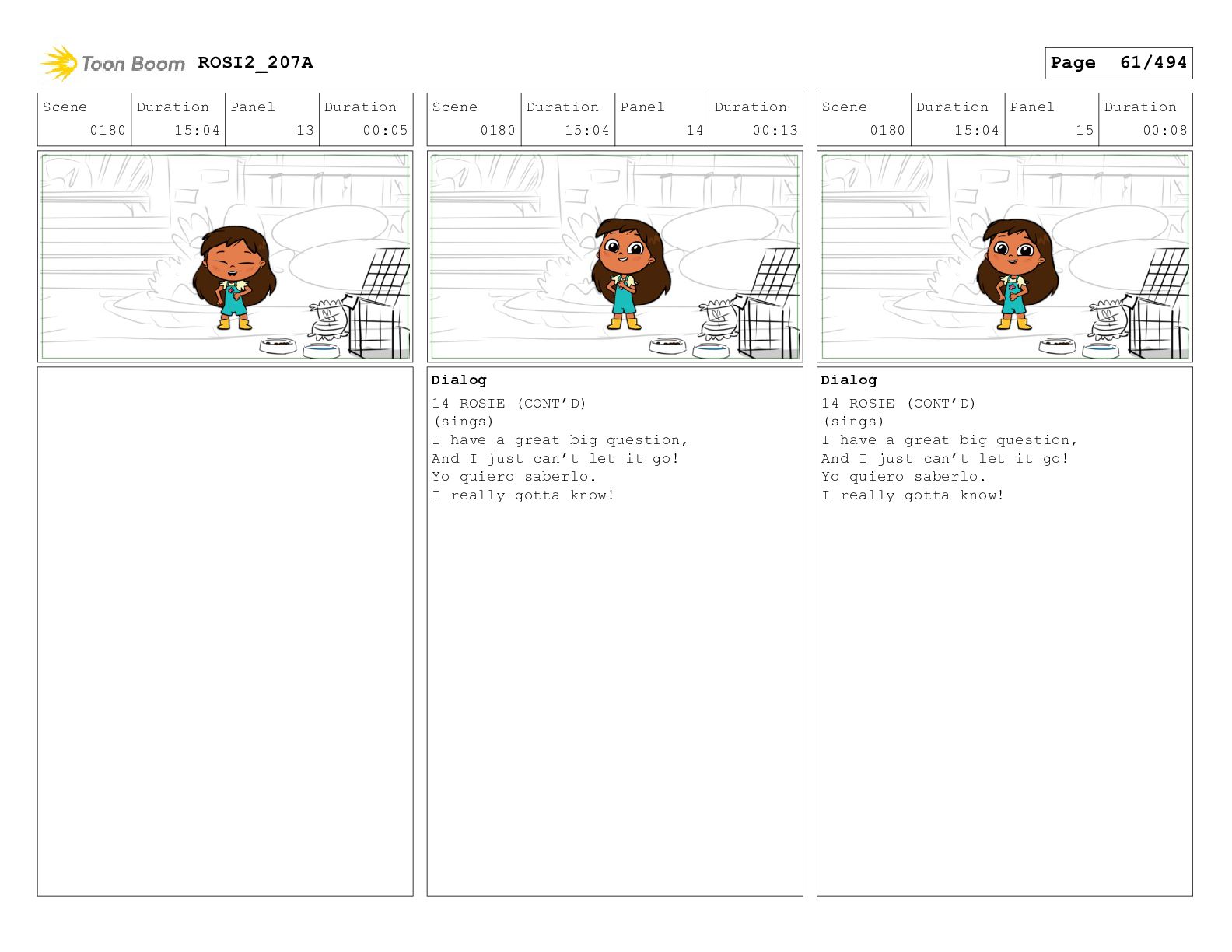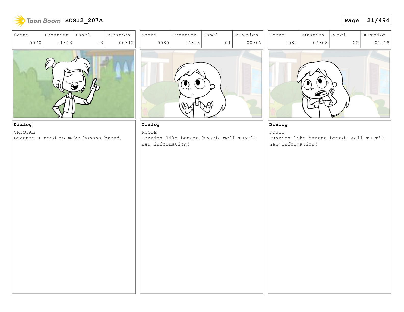 Crystal places two small bowls, a water pitcher, and a bag of rabbit food on the lawn. She pours water into a bowl. Scene 0140 Duration 06:02 Panel 02 Duration 00:18 Dialog 16 CRYSTAL This bowl’s for his water. And this one’s for his food. Action Notes Crystal places two small bowls, a water pitcher, and a bag of rabbit food on the lawn. She pours water into a bowl. Scene 0140 Duration 06:02 Panel 03 Duration 02:21 Dialog 16 CRYSTAL This bowl’s for his water. And this one’s for his food. Action Notes Crystal places two small bowls, a water pitcher, and a bag of rabbit food on the lawn. She pours water into a bowl. ROSI2_207A Page 41/494