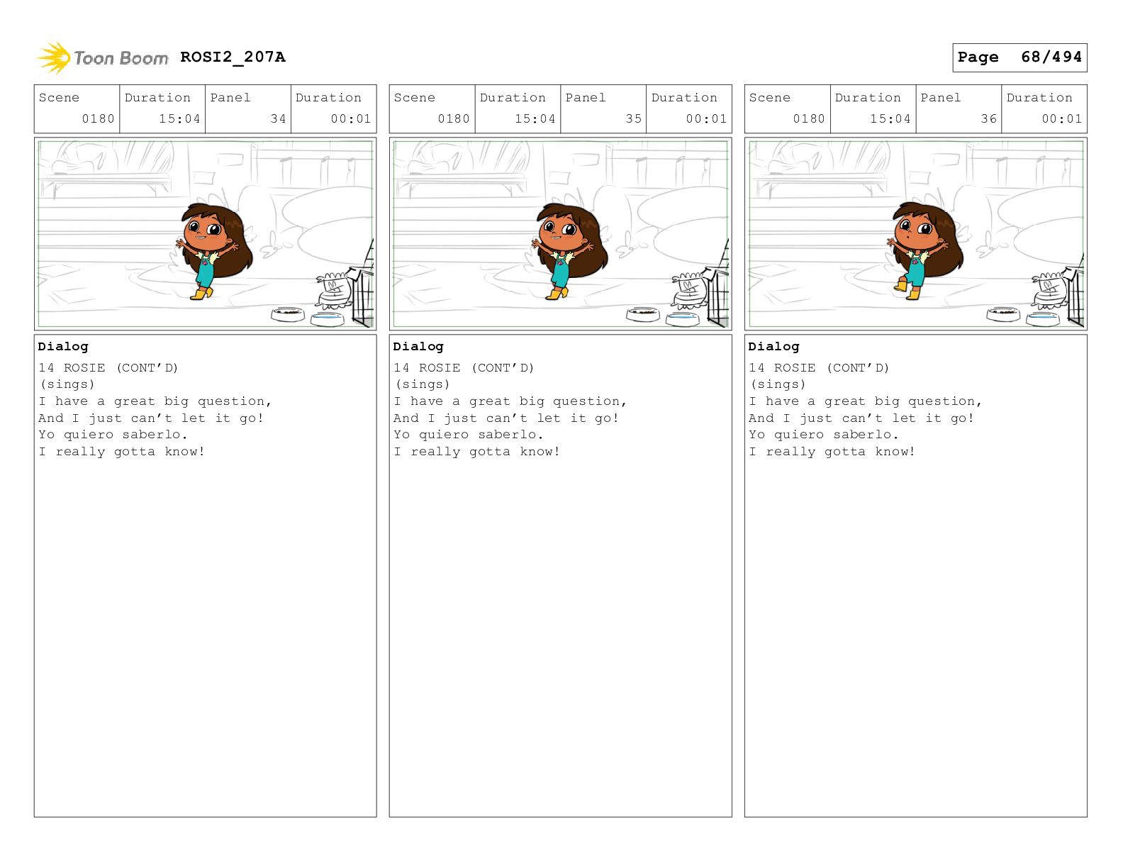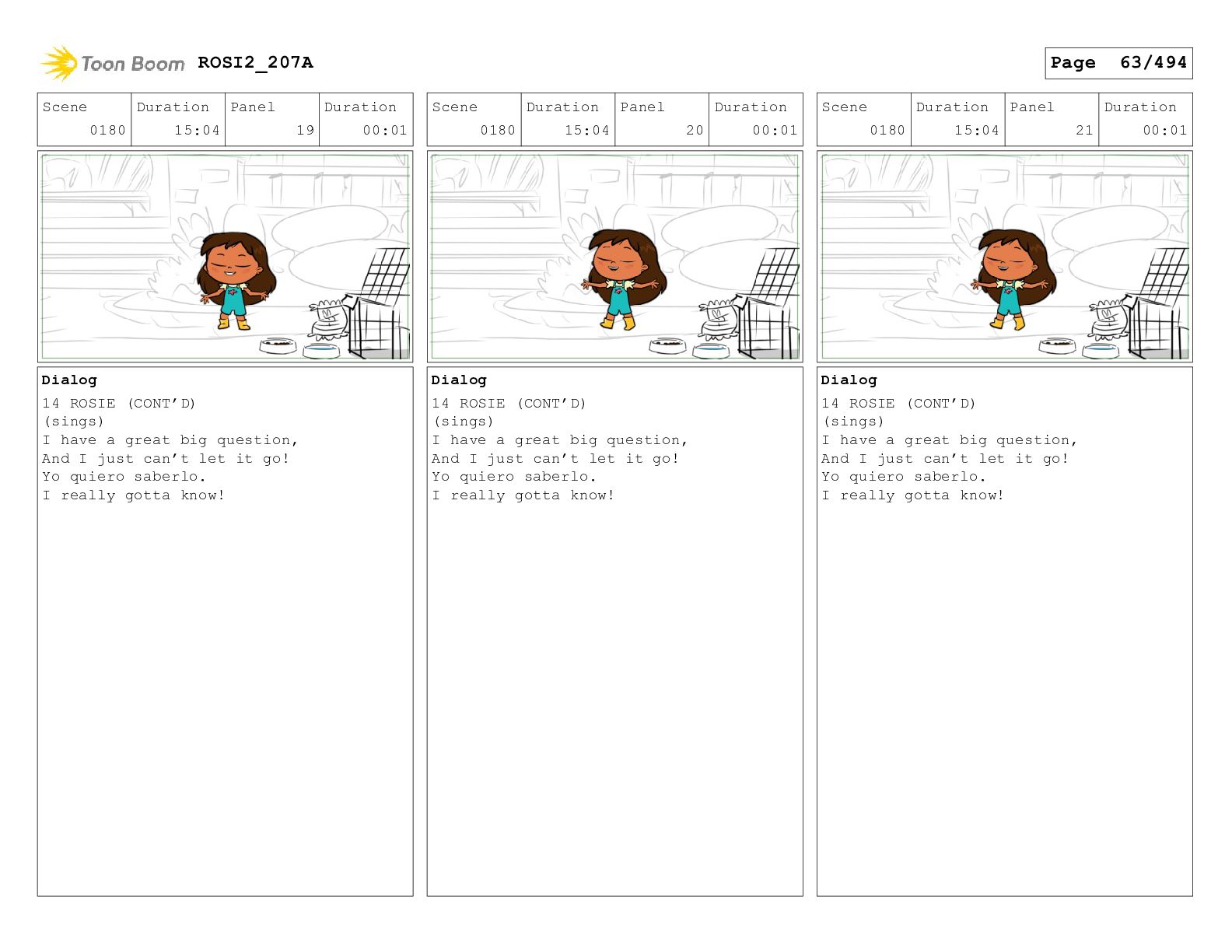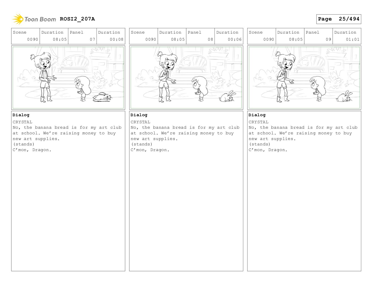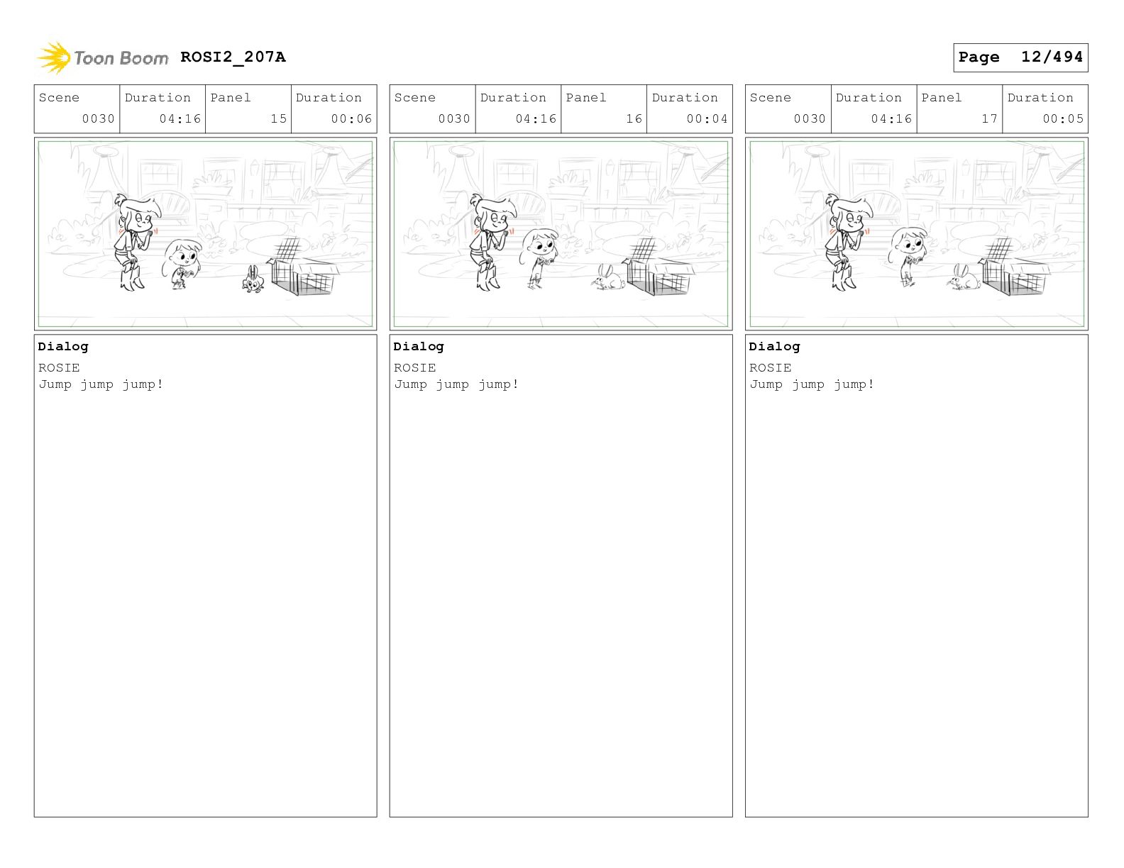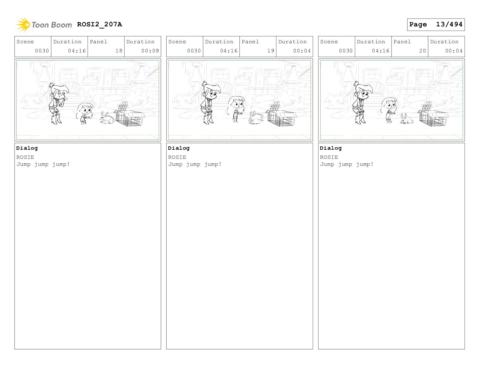 Crystal places two small bowls, a water pitcher, and a bag of rabbit food on the lawn. She pours water into a bowl. Scene 0140 Duration 06:02 Panel 02 Duration 00:18 Dialog 16 CRYSTAL This bowl’s for his water. And this one’s for his food. Action Notes Crystal places two small bowls, a water pitcher, and a bag of rabbit food on the lawn. She pours water into a bowl. Scene 0140 Duration 06:02 Panel 03 Duration 02:21 Dialog 16 CRYSTAL This bowl’s for his water. And this one’s for his food. Action Notes Crystal places two small bowls, a water pitcher, and a bag of rabbit food on the lawn. She pours water into a bowl. ROSI2_207A Page 41/494